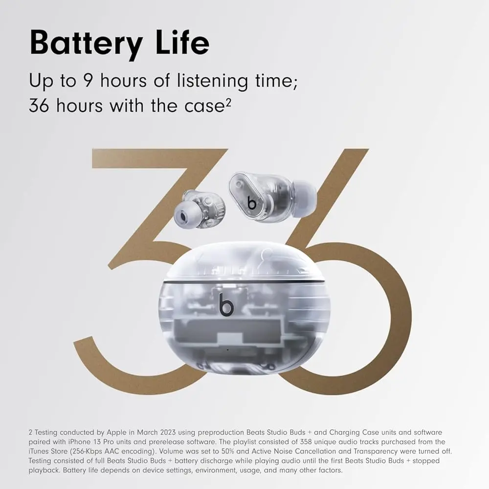Like New - Beats Studio Buds True Wireless Noise Cancelling Earbuds, - Transparent