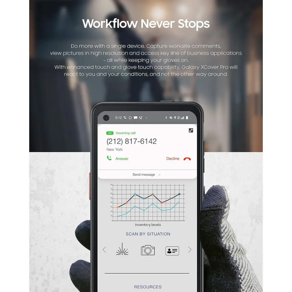 The Galaxy XCover Pro provides a familiar and easy-to-use environment, running on Android 10 for seamless operation.