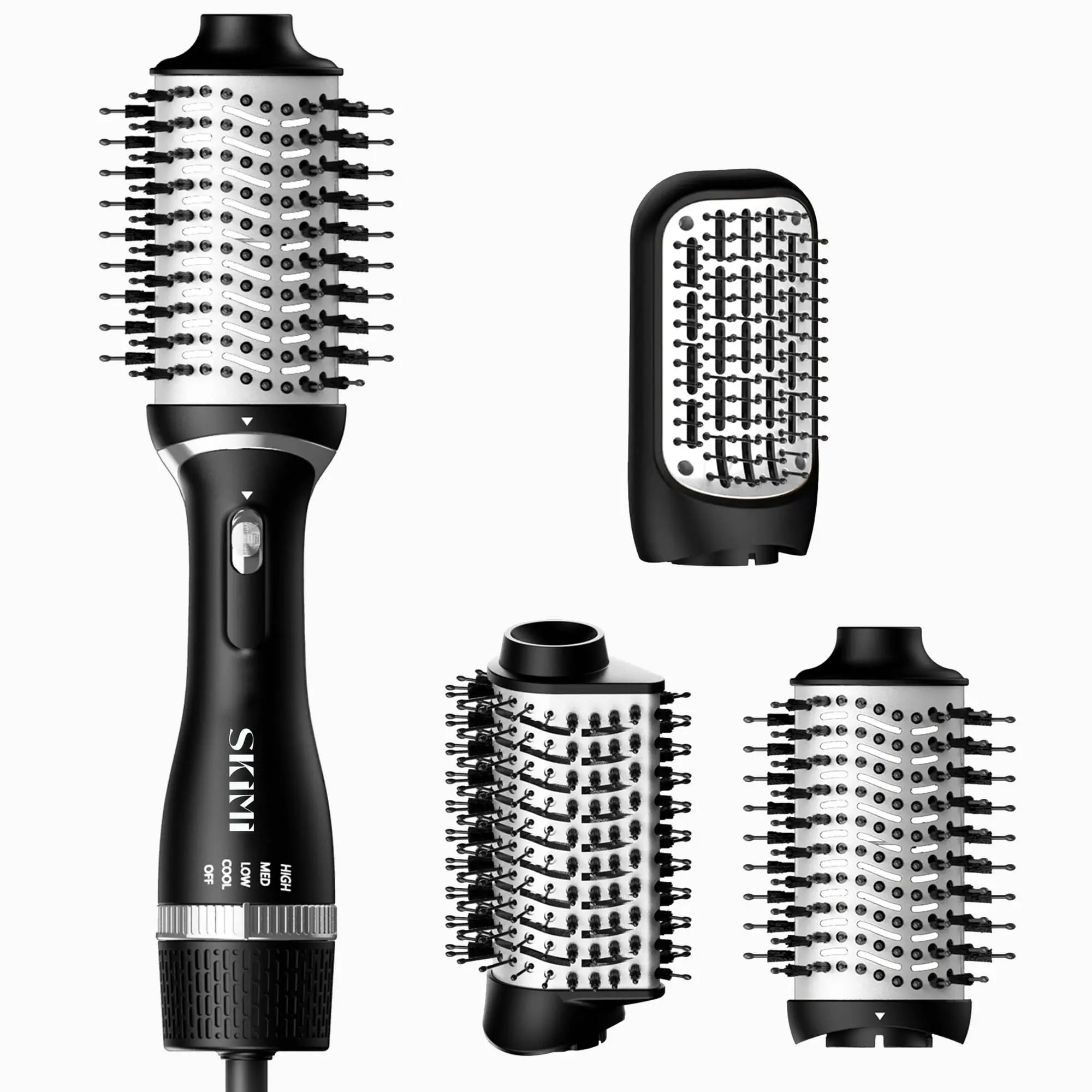 Versatile Temperature Control: With 1200 watts of power for quick heating, the SKIMI hair dryer brush offers four temperature settings to accommodate different hair types: Low for damaged or treated hair, Medium for fine or soft hair, High for thick or pre-dried hair, and Cool for long-lasting styles. The combination of nylon pins and tufted bristles helps prevent tangles while enhancing volume and shine.