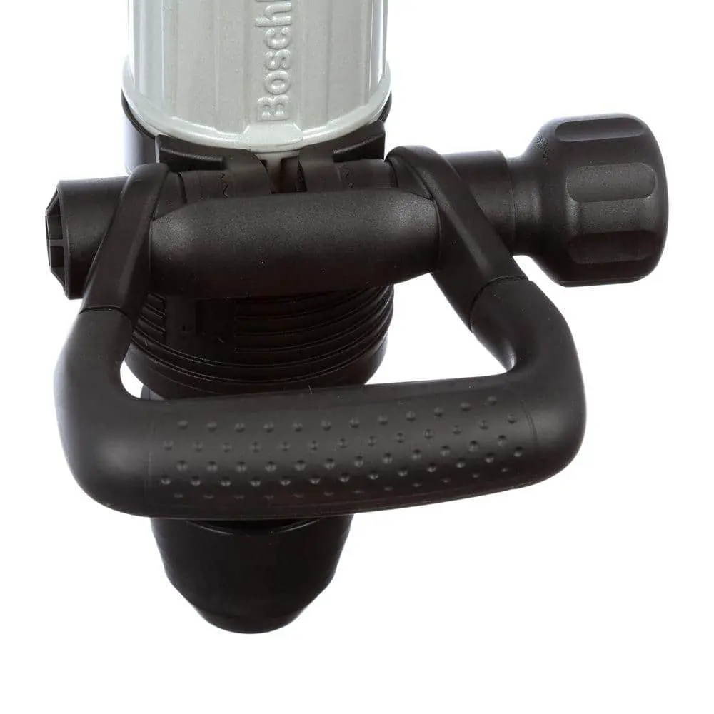 Bosch’s 15 Amp Demolition Hammer delivers powerful impact energy with advanced anti-vibration features. Designed for chipping through concrete or tile with 17 ft. lbs. of force, this tool offers variable speed and impact settings to suit different tasks. Its built-in harmonic absorber reduces vibrations, enhancing user comfort for longer work sessions. The tool’s sleek, inline design optimizes weight distribution, making it ideal for both vertical and light-duty horizontal tasks. The 12 vario-lock positions (in 30° increments) allow for customizable chisel angles (chisel sold separately).