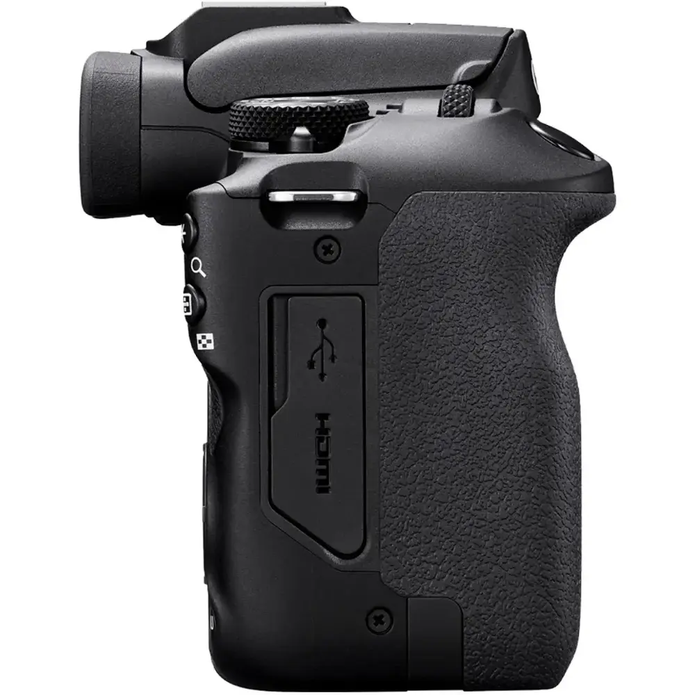 Experience the fun of content creation with the smallest and lightest EOS R series camera¹, the Canon EOS R100. Equipped with a 24.1 Megapixel APS-C CMOS sensor and DIGIC 8 processor, this camera excels at capturing stunning still images. The Dual Pixel CMOS AF system allows for fast, precise focus, including eye detection for human subjects. The EOS R100 also records Full HD video at up to 60 fps, and 4K video at 24 fps from the sensor's central area for exceptional video quality. Its RF-S18-45mm F4.5-6.3 IS STM lens is compact, offering flexibility while keeping your camera bag light.