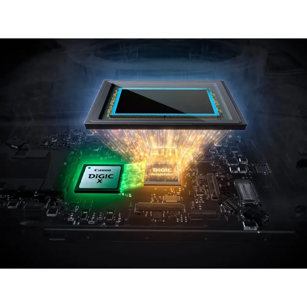 - DIGIC Accelerator: A new processor that works in tandem with the DIGIC X chip to handle tasks like autofocus detection, exposure metering, and subject tracking, improving overall speed and responsiveness.