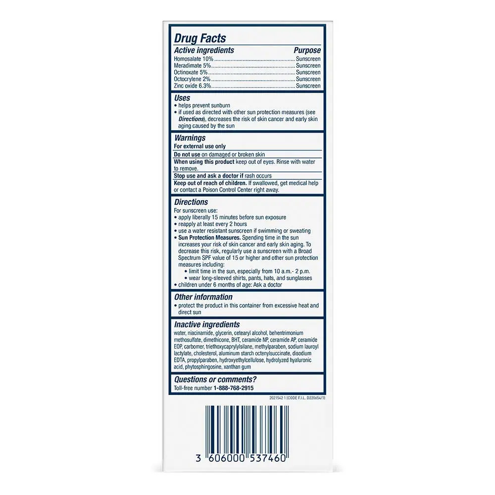 Non-Sealed Product[BROAD SPECTRUM SPF 30] A micro-fine zinc oxide sunscreen that provides UVA/UVB protection. This CeraVe moisturizer hydrates, absorbs quickly, and leaves a non-greasy finish.[OIL-FREE DAY CREAM] Use as the final step in your morning routine. Apply after other products have fully absorbed.[SUNSCREEN WITH NIACINAMIDE] Contains Hyaluronic Acid for moisture retention and Niacinamide to soothe skin, with MVE Technology for all-day hydration.[ESSENTIAL CERAMIDES] Features three essential ceramides (1, 3, 6-II) to help restore the skin barrier.[GENTLE ON SKIN] Recommended by the Skin Cancer Foundation, this fragrance-free, oil-free, and non-comedogenic formula is suitable for all skin types, including dry, sensitive, oily, and acne-prone.