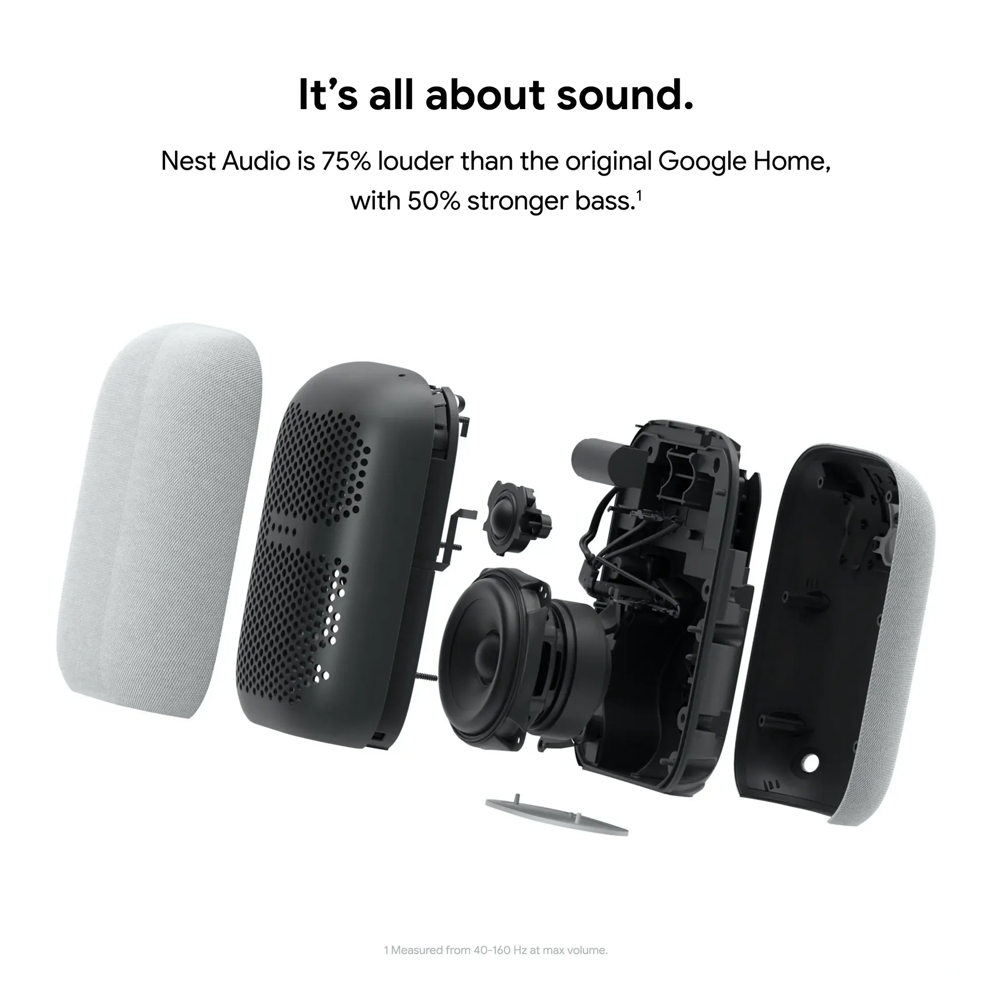 Designed with the environment in mind, Nest Audio features an enclosure made from 70% recycled plastic.