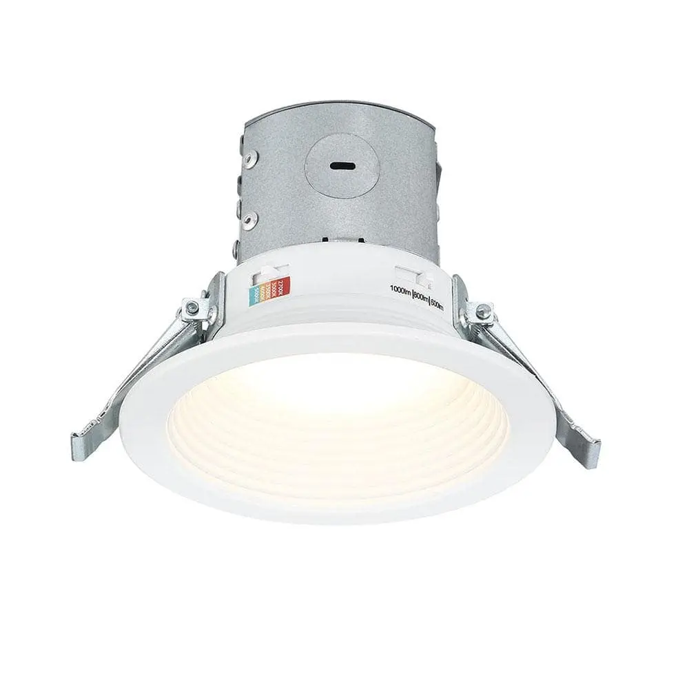 Commercial Electric 4 in. Easy Up In-Ceiling Fixtures are LED-powered recessed downlights with a built-in junction box for direct wiring—no need for separate housings. Simply wire a 120-Volt connection directly from the ceiling to the fixture's junction box. The spring-loaded clips secure the light to the ceiling drywall. Featuring 5 selectable CCT settings (2700K, 3000K, 3500K, 4000K, 5000K) and 3 lumen settings (600, 800, or 1000), these lights offer flexibility for any indoor space. Pre-installation configuration is easy with manual switches. Ideal for both residential and commercial ceilings, these lights work for new construction and remodels. Wet location rated and compatible with ceilings with or without insulation, they are also dimmable (10% to 100%) with most LED-rated dimmers. Save up to 80% on energy costs compared to incandescent bulbs, and the airtight design helps reduce heating and cooling losses.