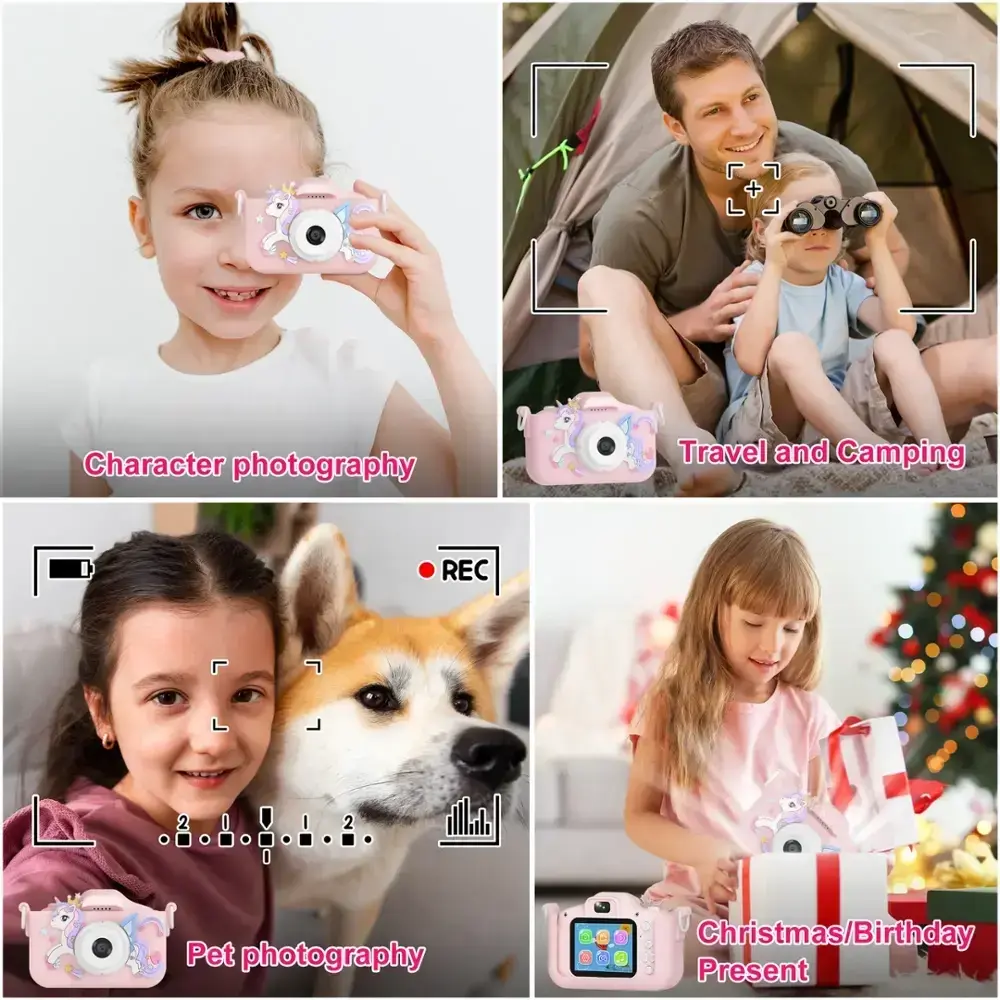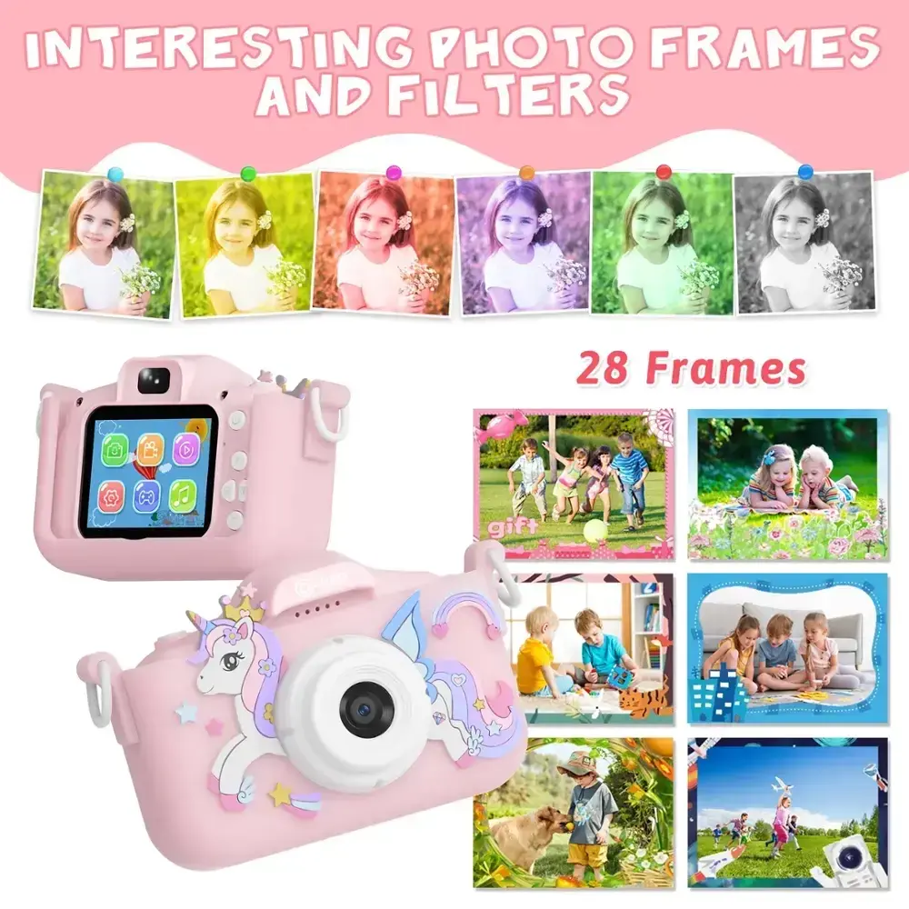 The Contixo KC3 Kids' Camera is the ideal digital companion for your little one, designed to inspire creativity and imagination in children ages 3-5, while also serving as a fun educational tool. Its durable silicone cover ensures it can handle drops and bumps during active play. With 1080p resolution for high-quality photos and videos and an 8X digital zoom, it lets curious young minds explore in detail. The selfie mode enables kids to take their own portraits, while the sound recording feature adds extra fun by capturing voices or music. The camera charges via Type C port, with a quick 1.5-2 hour charge time for longer play sessions. Built-in games like Snakes, Pushbox, and Tetris offer added entertainment. This versatile camera also features dual high-definition cameras, fun filters, and a waterproof cover for extra durability. With up to 2.5 hours of battery life, it supports a 32GB microSD card and includes a lanyard, charging cable, and instructions. Available in blue, green, and pink, this camera is not just a toy—it's an educational tool for young photographers ages 3-12.