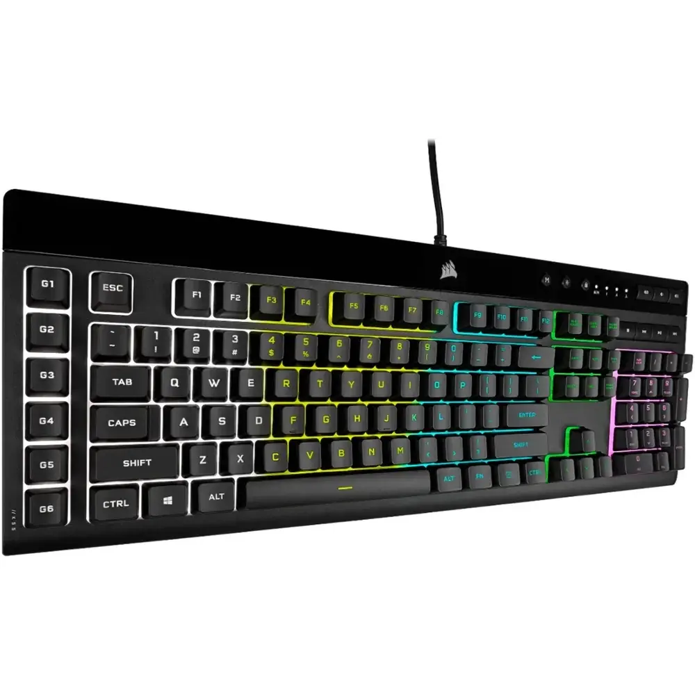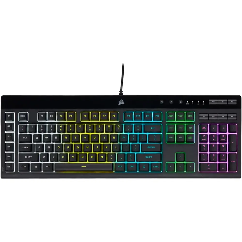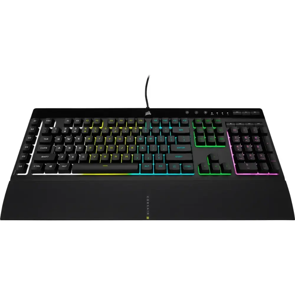 Enhance your gaming experience with the CORSAIR K55 RGB PRO Gaming Keyboard, featuring five-zone dynamic RGB backlighting and six programmable macro keys for seamless gameplay. Built to withstand daily wear, it boasts an IP42-rated dust and spill-resistant design, ensuring durability even in intense gaming sessions. The detachable palm rest offers added comfort, while quiet, responsive keys make typing and gaming effortless. Dedicated media controls let you adjust volume and playback without interrupting your game. With CORSAIR iCUE software, you can customize lighting effects and macros, while anti-ghosting and selective key rollover ensure every critical input is registered accurately.