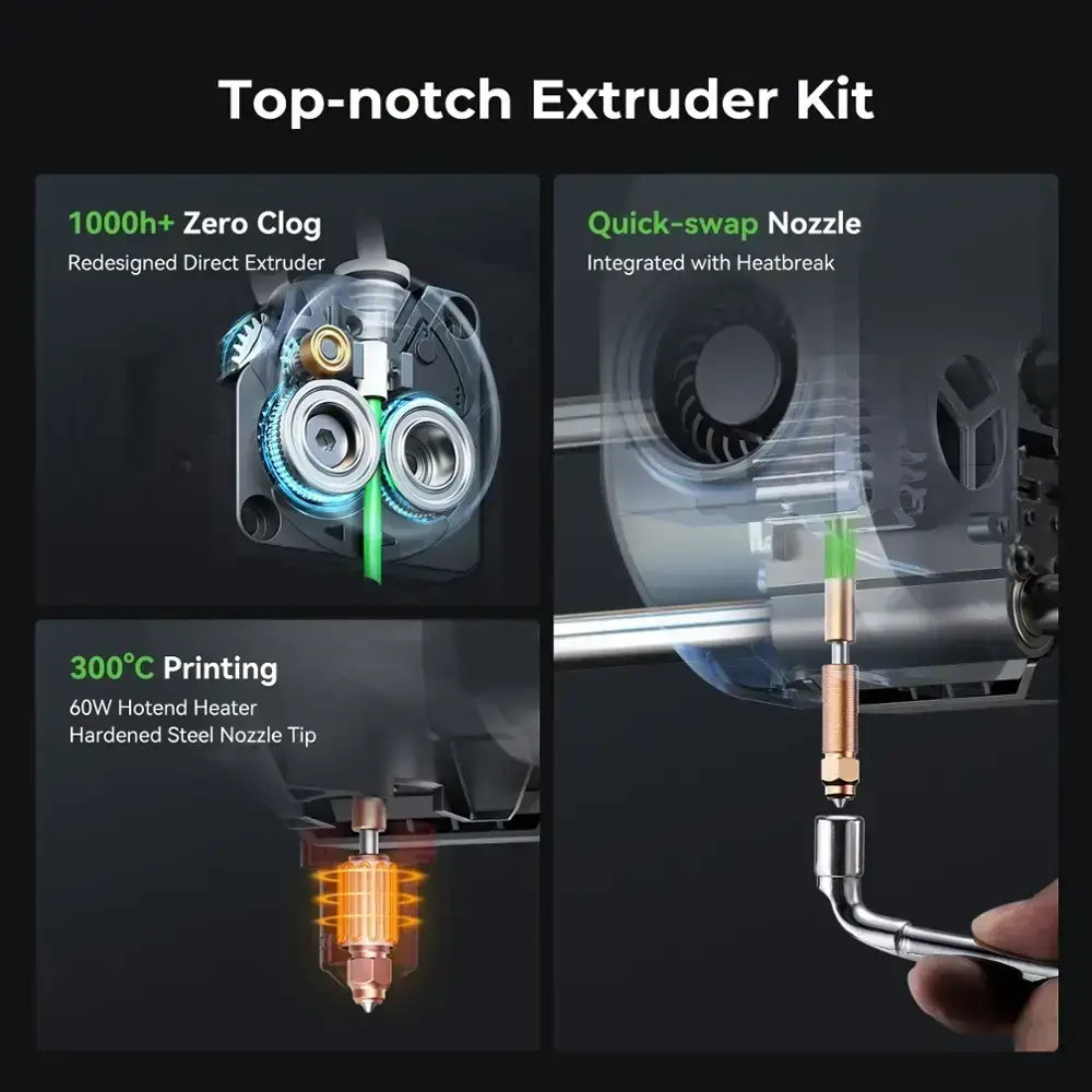 The Creality Ender-3 V3 Plus is designed to meet all your 3D printing needs, featuring a spacious 300x300x330mm build volume. It incorporates the upgraded CoreXZ structure, which uses lighter moving parts for faster printing speeds without compromising quality. This innovative design, praised for its efficiency, enhances stability and simplifies maintenance. With dual motors on the Y-axis and support rods, the V3 Plus achieves printing speeds of up to 600mm/s while maintaining exceptional precision. Dual part cooling fans ensure optimal print quality, and the clog-free extruder kit, along with a quick-swap tri-metal nozzle, makes the printing process easier. Whether you're a beginner or an experienced user, the Ender-3 V3 Plus delivers reliable, high-quality results, making it an ideal choice for both small and large 3D printing projects.