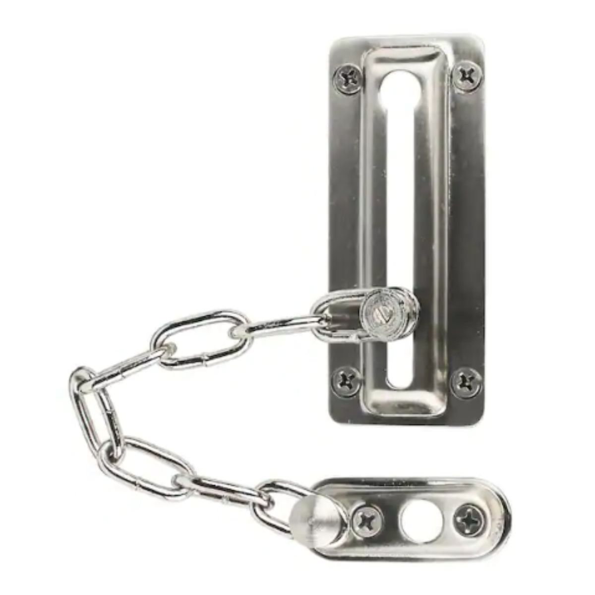The Defiant Chain Door Guard enhances security for entry doors, allowing partial opening for ventilation or visibility while maintaining safety. With fasteners for easy installation, it is a user-friendly option to secure residential entrances without compromising functionality.