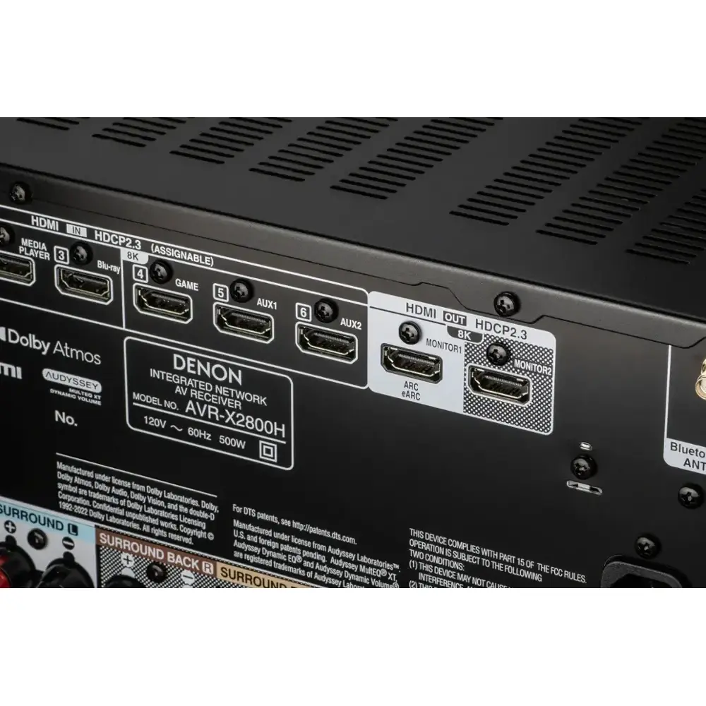 Denon - AVR-X2800H (95W X 7) 7.2-Ch. with HEOS and Dolby Atmos 8K Ultra HD HDR Compatible AV Home Theater Receiver with Alexa - Black (AVR-X2800H)