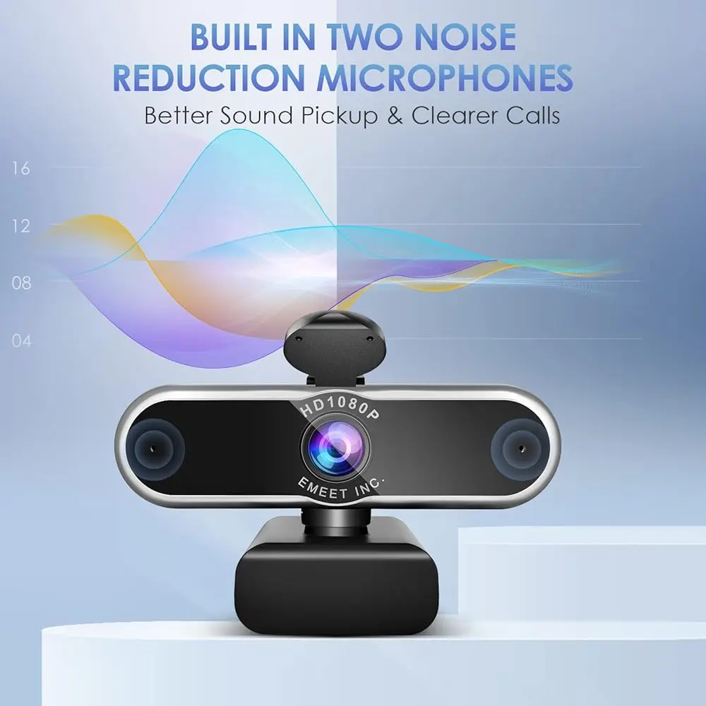 • Dual Noise-Canceling Microphones: Built-in microphones enhance audio quality by filtering background noise, offering better sound than typical computer cameras.