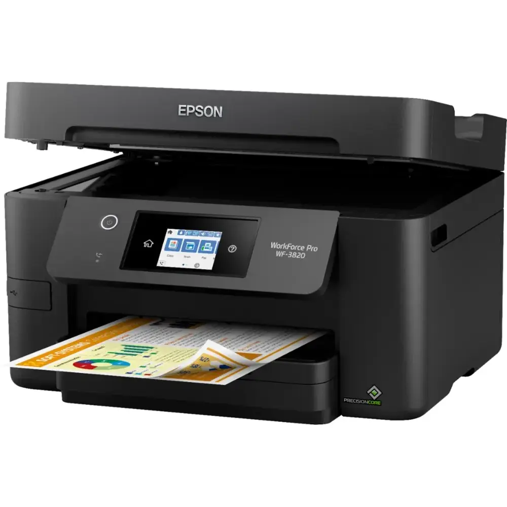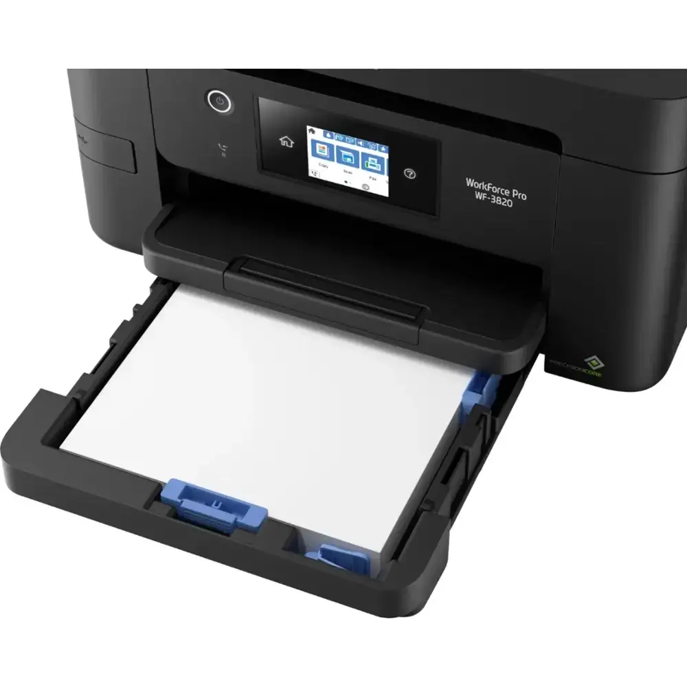 Boost your business’s productivity with the ultra-efficient WorkForce Pro WF-3820 all-in-one printer. Engineered for high-volume printing, this powerhouse delivers sharp, professional-quality prints at impressive speeds of up to 21 ISO ppm (black) and 11 ISO ppm (color), using vibrant DURABrite Ultra instant-dry pigment inks.