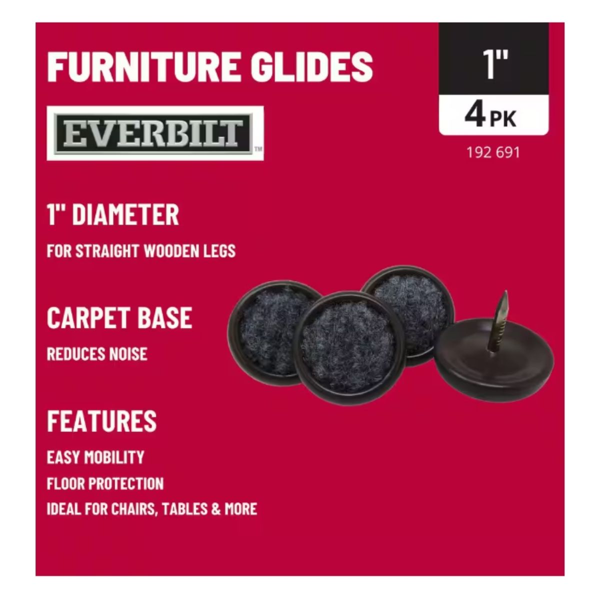 Carpet furniture glides are suitable for use on tables and other immobile furniture pieces. These glides are designed to safeguard hard floors from scratches, scuffs, and other forms of damage. Each set includes four glides.