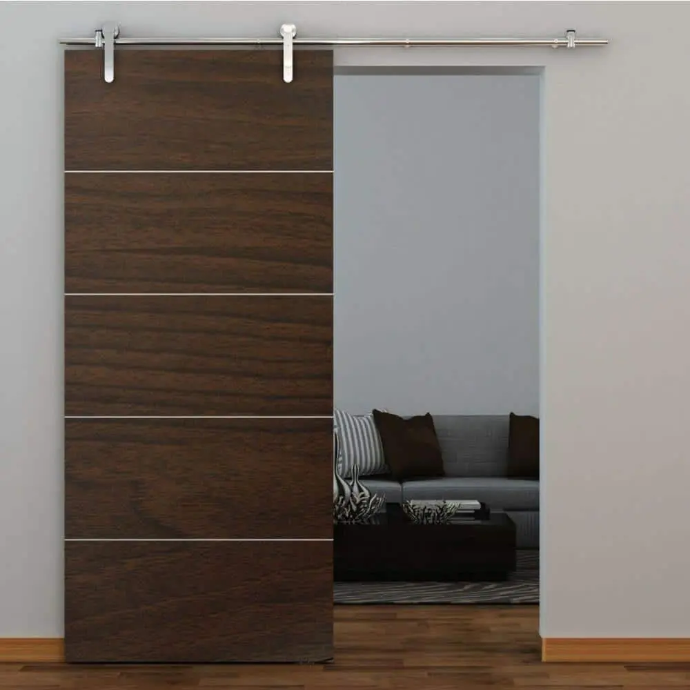 Add a touch of sophistication to your doorway with this Stainless-Steel Sliding Barn Door and Hardware Kit. Perfect for both homes and offices, this barn-style door is great for closets, interior doors, and room dividers. The high-density plastic wheels ensure smooth, quiet operation, while the kit includes all necessary mounting hardware and hanging components for a single door.