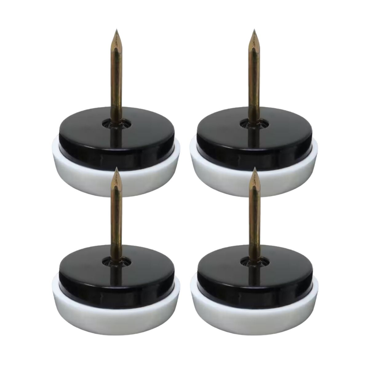 Nylon glides help chairs and objects move smoothly while protecting surfaces. Ideal for stools, chairs, and tables with straight wooden legs, the black cushions reduce noise and absorb shock.