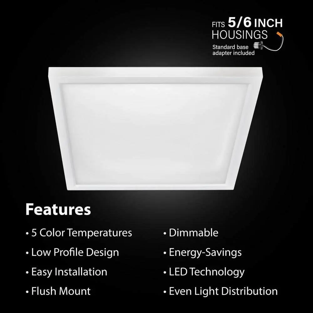 The Feit Electric 74208/6WYCA 7.5-inch Square LED Flat Panel combines functionality and style for any residential or commercial space. Its innovative selectable color temperature feature allows you to choose from Warm White, Neutral White, Cool White, Daylight White, or Daylight Deluxe White (3000K/3500K/4000K/5000K/6500K), either on the fixture itself or by toggling a wall switch after installation. With an ultra-slim, low-profile design (under 1 inch), this fixture provides uniform light distribution using edge-lit LEDs, eliminating hot spots, flickers, or glare. Perfect for kitchens, bathrooms, bedrooms, hallways, and more, it can be flush-mounted or installed in recessed cans (fits most 5" and 6" housings) with the included standard base adapter. The frosted polycarbonate lens and white aluminum frame enhance the modern aesthetic, while the 90+ CRI ensures vibrant, true-to-life colors. This fixture complies with California Title 24 and Energy Star standards, delivering 800 lumens of light using only 10.5 watts, saving up to 83.8% in energy costs compared to traditional incandescent lights. It has a 50,000-hour lifespan (45.7 years at 3 hours per day) and an estimated annual energy cost of just $1.26/year.