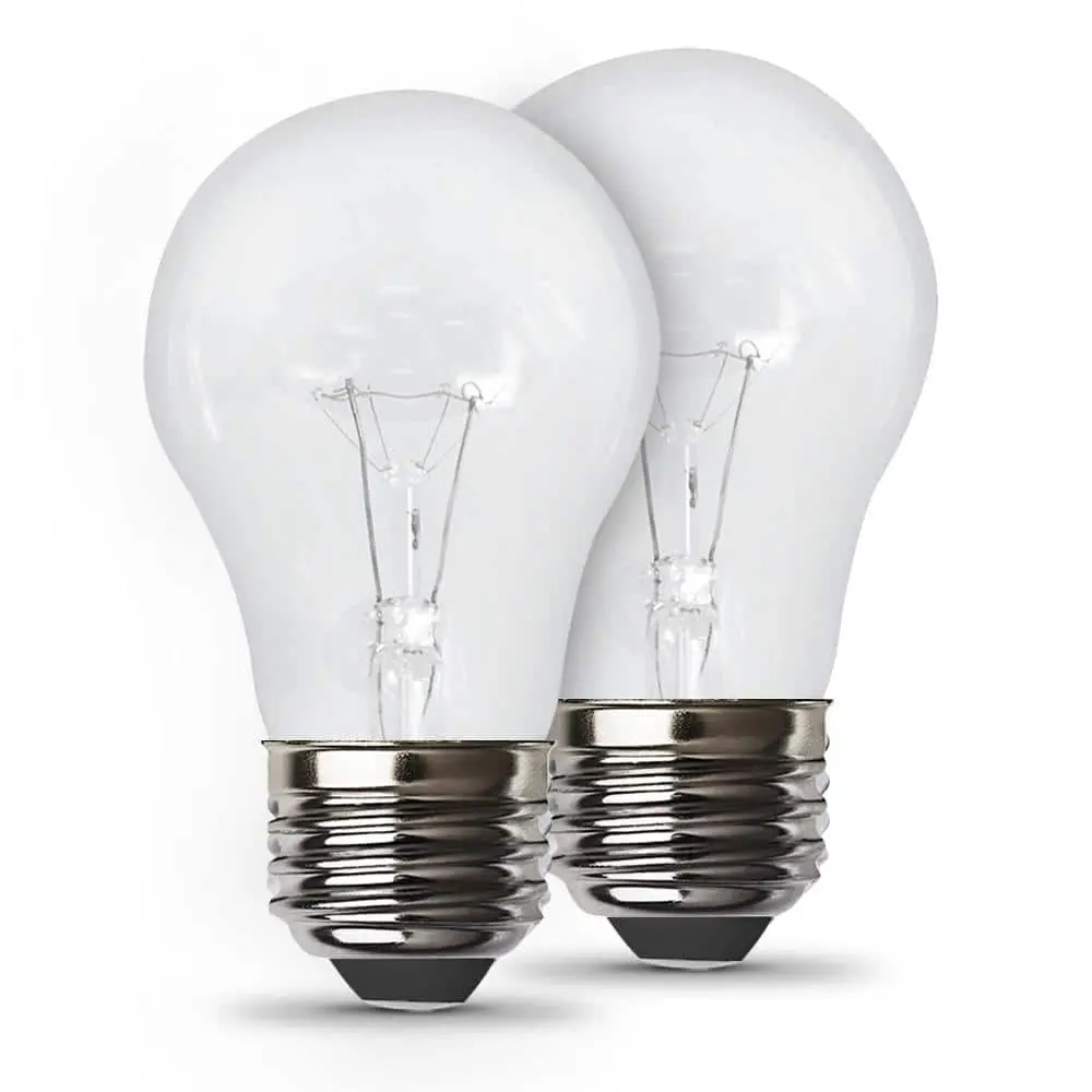 The Feit Electric 40-Watt Incandescent Clear A15 Specialty Light Bulb is designed for ceiling fans and other specialty applications. Featuring an E26 medium base, it operates at 120 volts with a lifespan of up to 2,000 hours. Perfect for both residential and commercial use, this bulb provides reliable illumination with even light distribution.