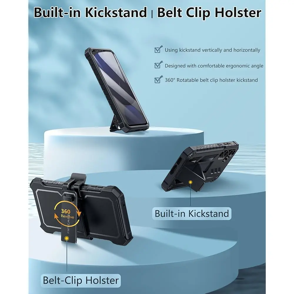 Equipped with a built-in kickstand, this case allows for convenient hands-free viewing, whether you're watching videos or attending virtual meetings. The included holster provides added functionality, keeping your phone secure and accessible on the go. Designed with precision, it ensures full access to all ports, buttons, and features, maintaining the phone's usability while offering reliable protection.