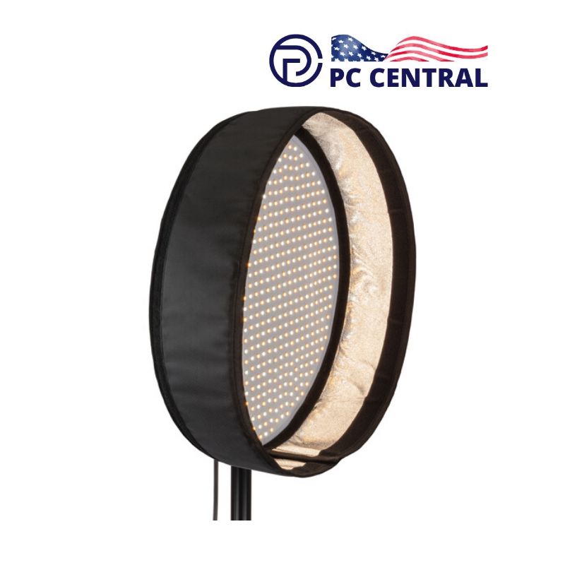 The PortaSun Round Flexible Bi-Color LED Light with Softbox and Grid V2 from Genaray is a lightweight, flexible, circular LED panel with a 20" diameter array, featuring 336 daylight and 336 tungsten LEDs to provide up to 5770 Lux of output.
