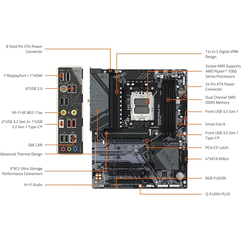 Upgrade Your Gaming Rig The GIGABYTE B650 Eagle AX is the perfect foundation for your high-performance gaming PC. Its powerful features and durable design make it a top choice for gamers and enthusiasts.
