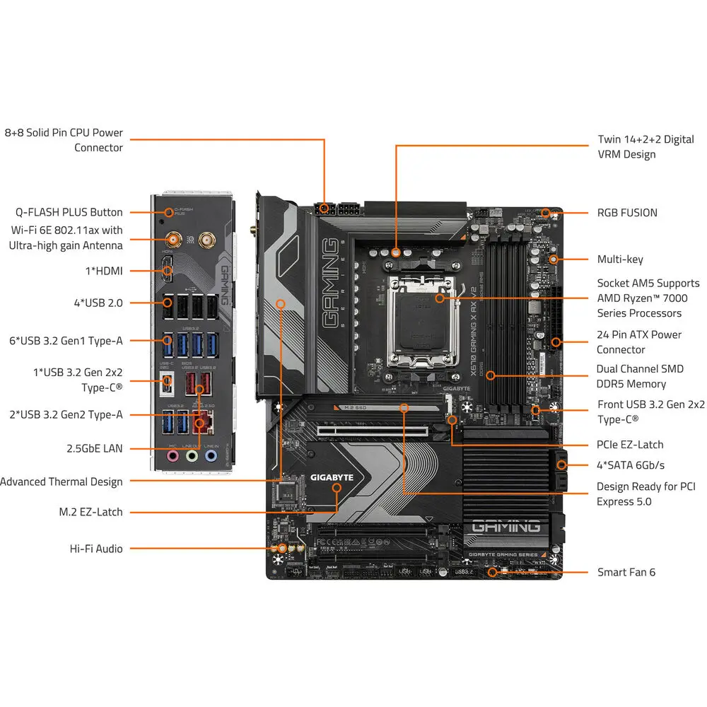 The Gigabyte X670 GAMING X AX V2 is a high-performance ATX motherboard designed for AMD Ryzen 7000 series processors. It offers a great balance of performance and features, making it an excellent choice for a wide range of PC builds, from gaming rigs to content creation workstations.