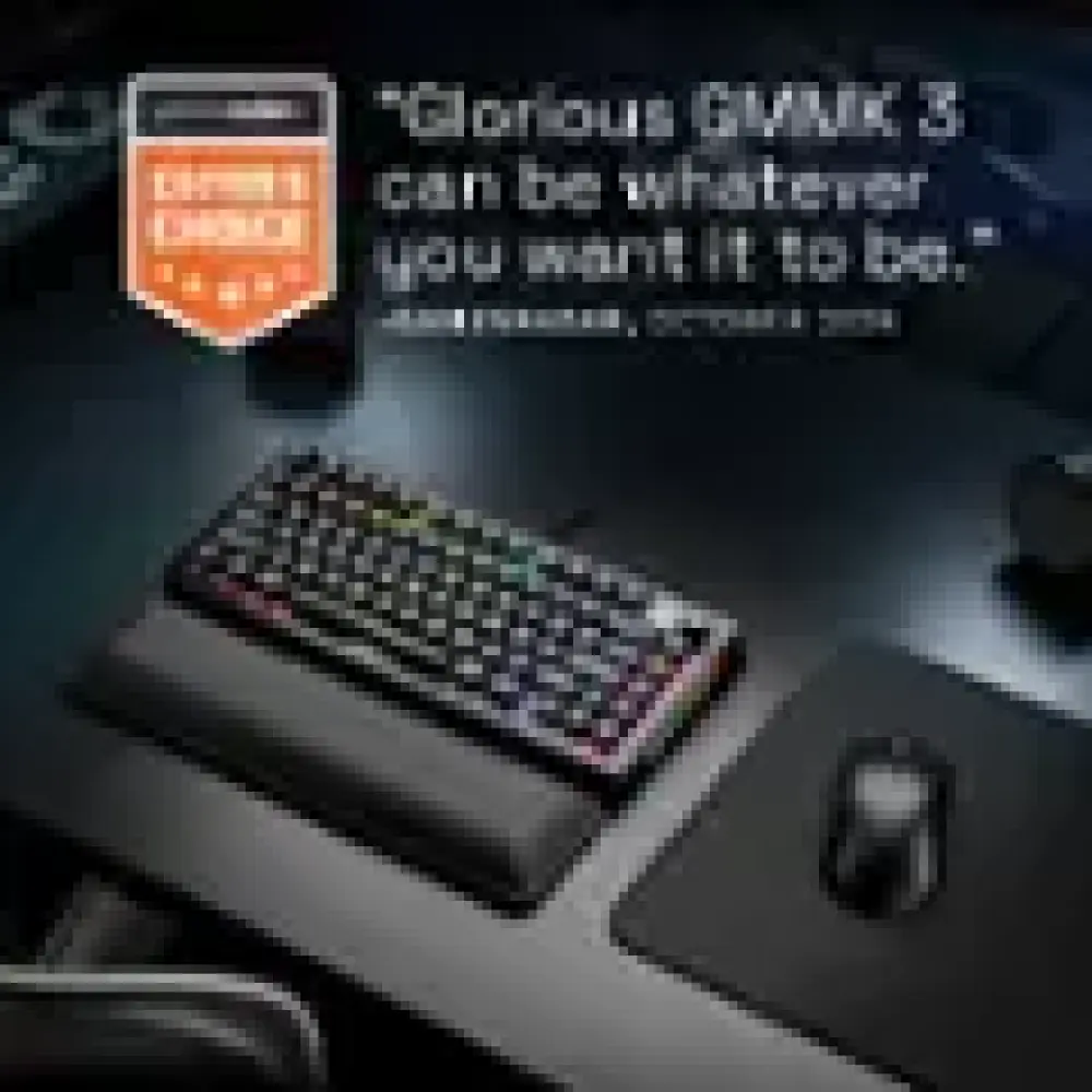 The Glorious GMMK 3 PRO 75% Wired Mechanical Gaming Keyboard offers a compact layout with all the essential keys for an efficient gaming experience. Featuring mechanical linear switches, it delivers smooth and quiet keystrokes, perfect for fast-paced gaming or typing. The keyboard is equipped with hot-swappable switches, allowing you to easily customize and change switches without soldering. With RGB lighting, it offers a visually appealing and customizable aesthetic. Built for durability, this keyboard is perfect for gamers and typists who demand both performance and style. The sleek black finish adds a touch of elegance to any setup.