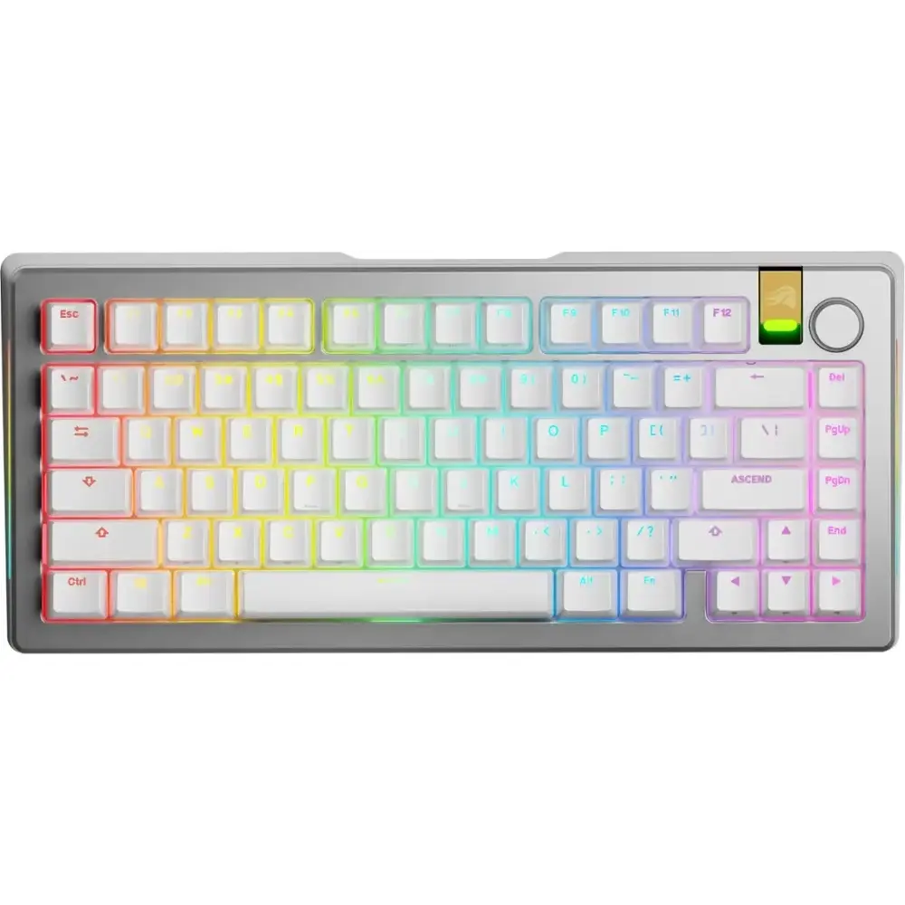 The Glorious GMMK 3 PRO HE 75% Wireless Hall-Effect Linear Switch Gaming Keyboard is designed for precision and performance, featuring a 75% layout that offers a compact design without sacrificing essential keys. Equipped with wireless Hall-effect linear switches, it delivers smooth, precise keystrokes with minimal bounce for an ultra-responsive experience. The rapid trigger technology ensures instant key activation, providing faster response times in every game. Its adjustable actuation allows for customized key sensitivity, tailoring the typing experience to your preference. The silver frame adds a sleek, durable aesthetic, while the keyboard is hot-swappable, allowing you to change switches easily without soldering. With RGB lighting, you can personalize the look to suit your style, and the long-lasting battery ensures you enjoy wireless freedom for extended periods