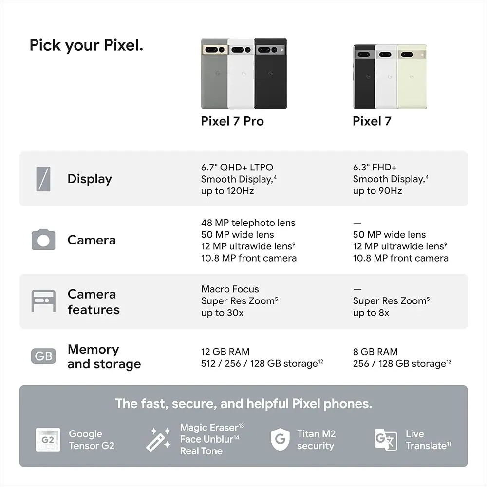 • Security: Built-in Titan M2 security chip and Google Tensor G2 for advanced protection.