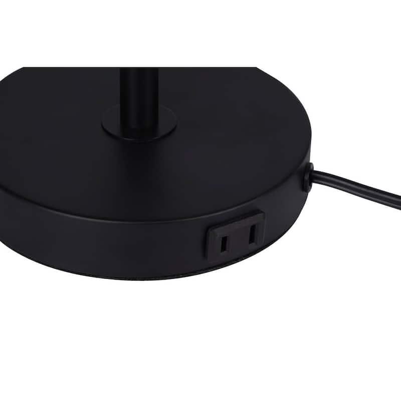 Hampton Bay 17.5 in. Corbin Black Modern Table Lamp with Black Metal Shade and AC Outlet on Base