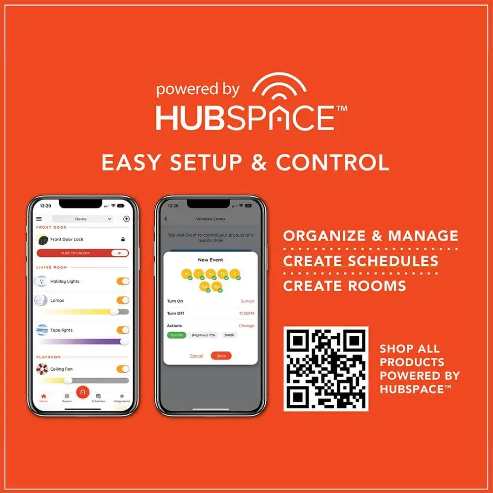 The 52-inch Morland Smart Ceiling Fan by Hampton Bay is a perfect addition to your smart home setup. It offers multiple control options: a remote control (included), the Hubspace App on your smart device, or voice commands via Alexa or Google Assistant. Combining modern design with advanced technology, this fan enhances both indoor and covered outdoor spaces. Its matte black finish pairs beautifully with five reversible blades in matte black and brown oak finishes. The dimmable integrated LED light kit includes a frosted, shatter-resistant plastic shade and six adjustable color temperatures, ranging from warm white (2700K) to daylight deluxe (6500K). Powered by a quiet, efficient DC motor, the fan offers six speed settings and is reversible for year-round comfort and energy savings.