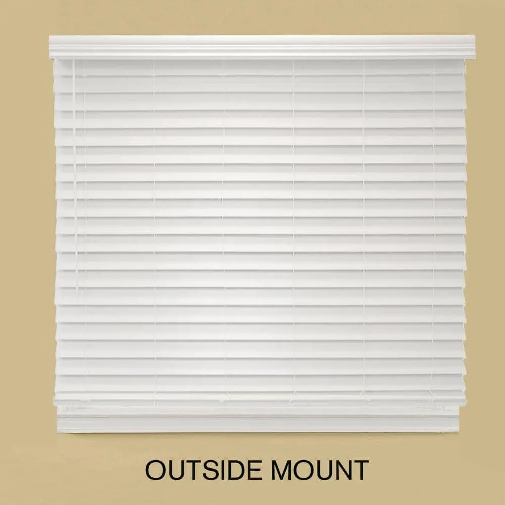 Upgrade your windows with the Home Decorators Collection White Cordless Premium Faux Wood Blinds, designed for both elegance and functionality. Measuring 35 in. W x 64 in. L (Actual: 34.5 in. W x 64 in. L), these blinds feature a cordless design for a sleek, modern look and enhanced child safety. Crafted from premium faux wood, they are durable, moisture-resistant, and easy to clean, making them ideal for any room. The 2.5-inch slats offer better light control and a wider outside view, while the elegant white finish seamlessly complements various decor styles. With easy installation and included mounting hardware, these blinds provide a hassle-free and stylish window treatment solution