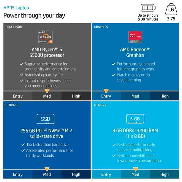 Stay productive and entertained wherever you go with this sleek 15.6" HP laptop in a stunning Spruce Blue finish. Designed for portability and performance, it features a vibrant Full HD display, reliable AMD Ryzen processing, and fast SSD storage—all backed by Windows 11 and long battery life to keep up with your busiest days.