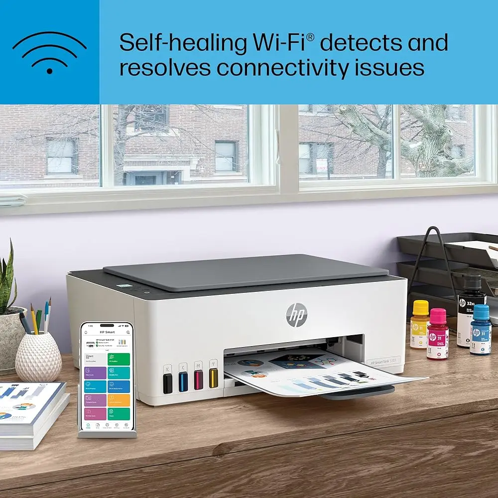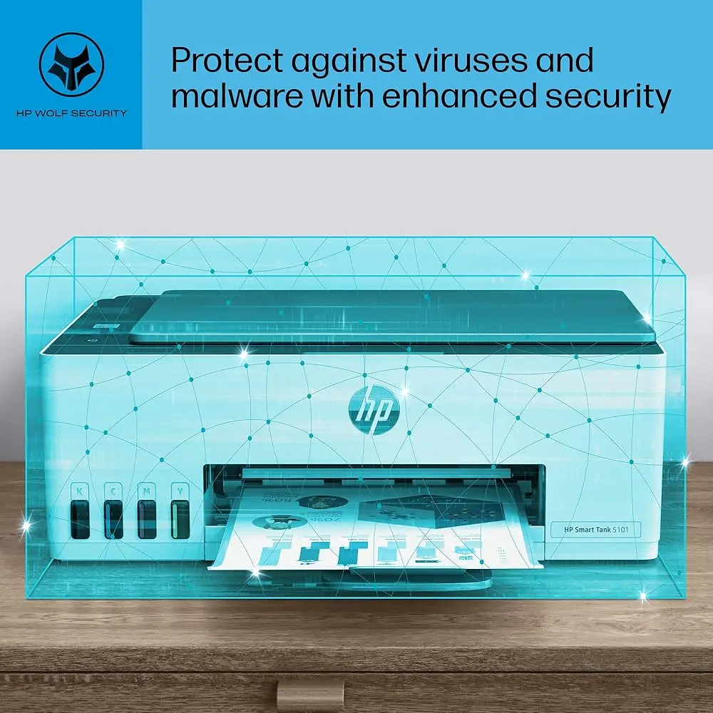 The HP Smart Tank 5101 Wireless All-in-One Ink Tank Printer is the ultimate solution for home printing needs, combining affordability with high performance. This printer is designed to handle all your printing, scanning, and copying tasks with ease. Featuring a refillable ink tank system, it offers a cost-effective printing experience, reducing the need for frequent cartridge replacements.