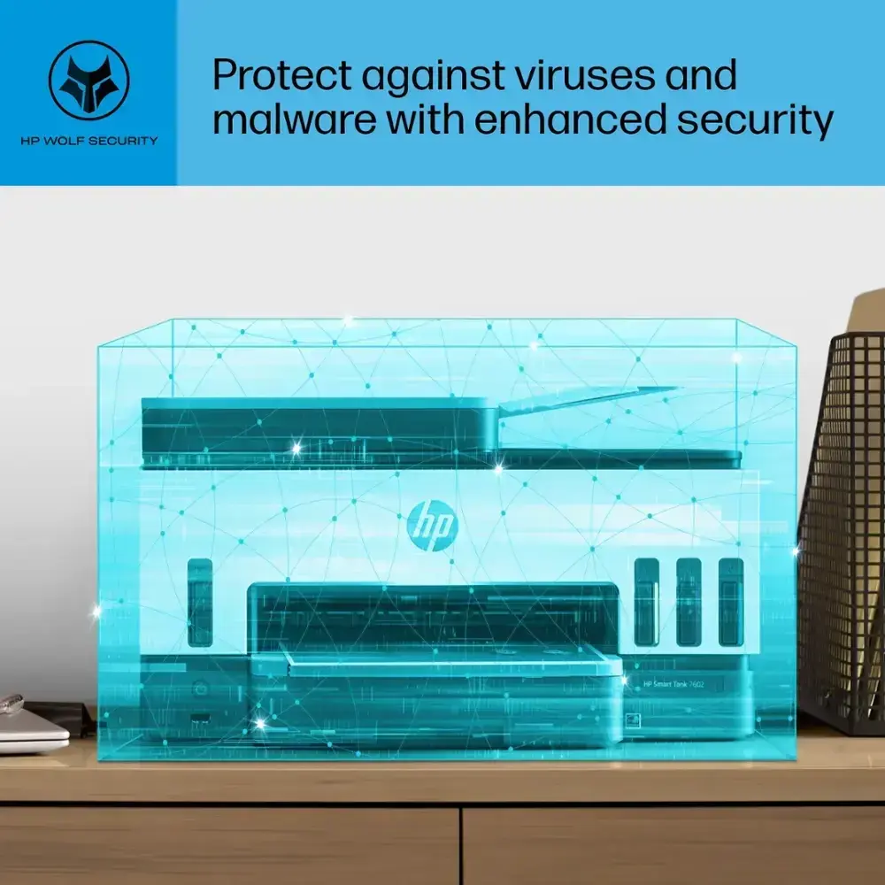 The HP Smart Tank 7602 Supertank Printer is designed for seamless, high-quality, and cost-effective printing, ideal for small businesses. With an integrated touch panel, a high-capacity refillable ink tank, and features like an automatic document feeder (ADF), wireless and Ethernet connectivity, this printer offers premium performance and convenience.