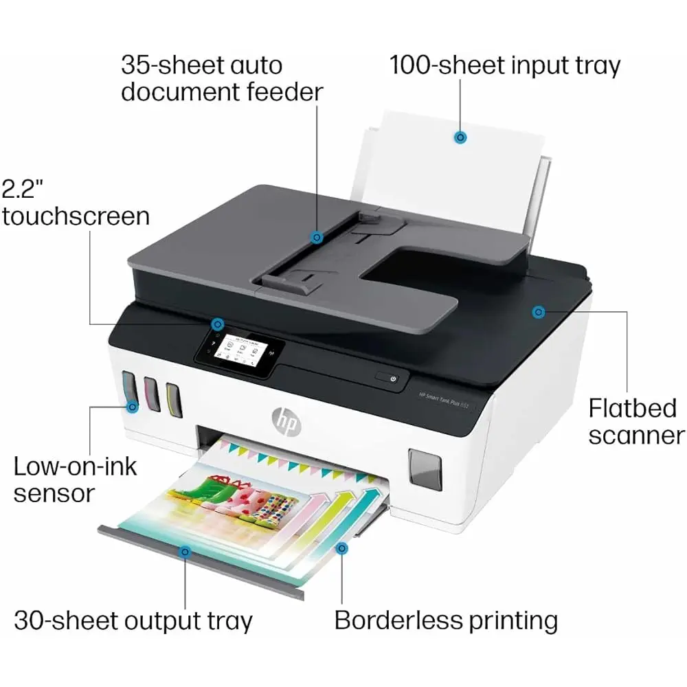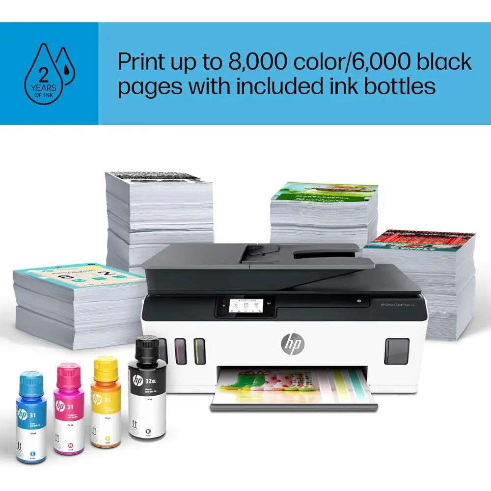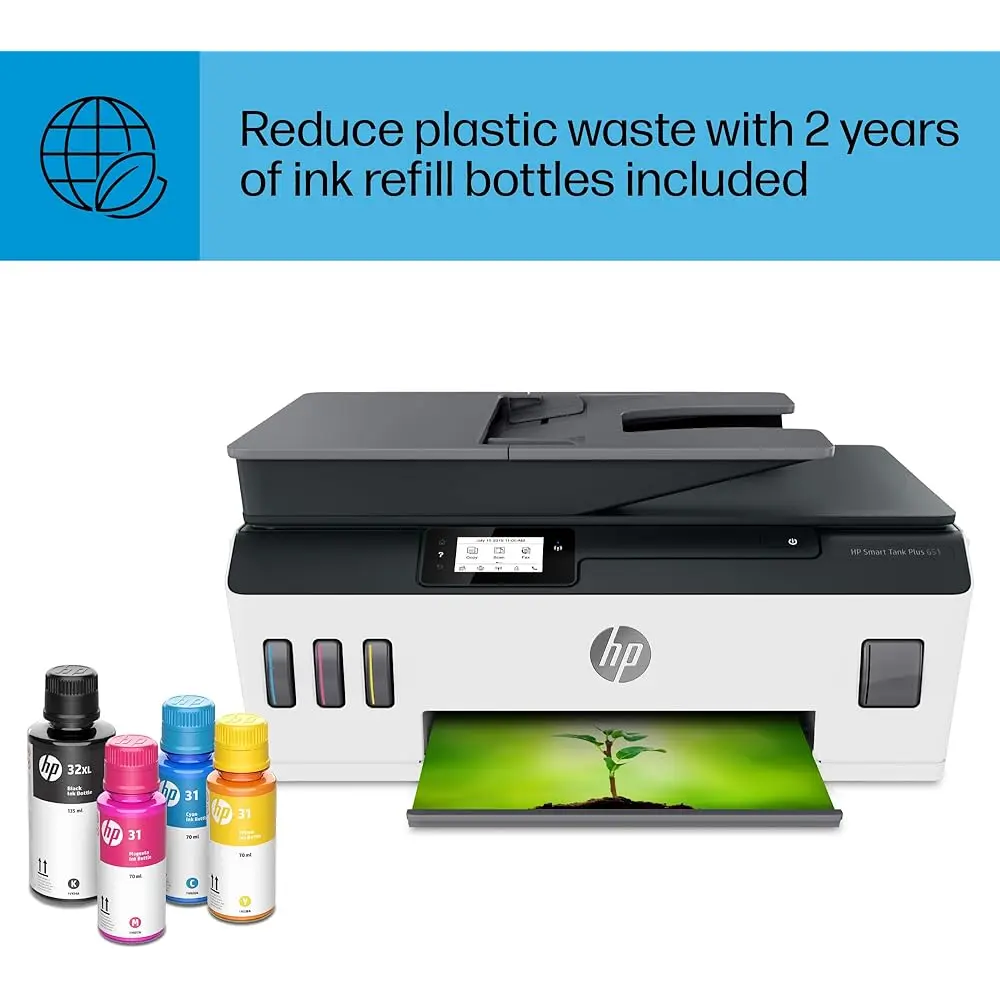 The HP Smart Tank Plus 651 Wireless All-in-One Ink-Tank Printer is designed to meet all your home or office printing needs with exceptional value. This printer provides up to 2 years of ink in bottles, making it an economical and low-maintenance solution for high-volume printing. Whether you need to print, scan, or copy, this versatile device ensures quality results across all tasks.