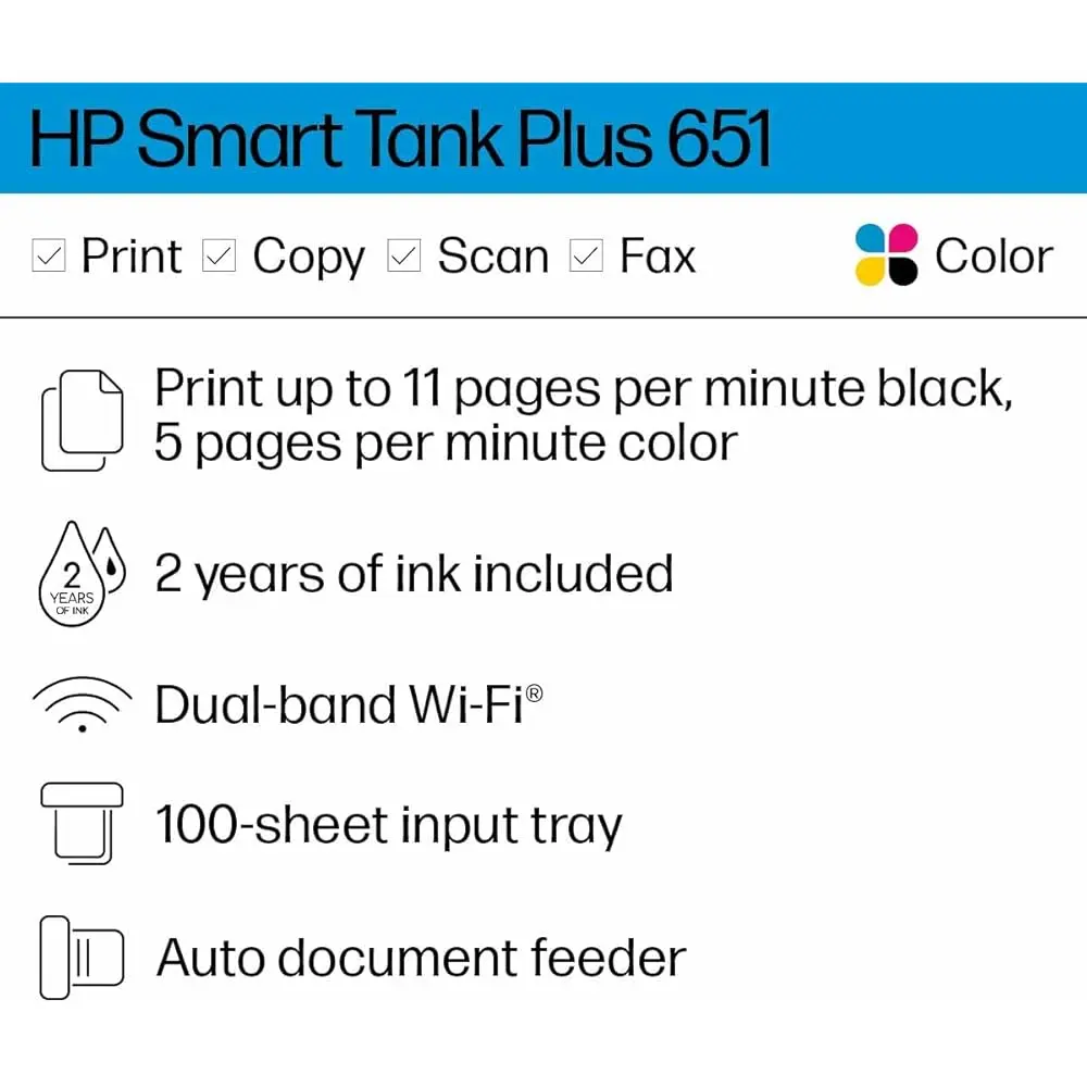 This all-in-one printer is designed to provide an affordable, reliable, and efficient printing experience, making it perfect for both personal and small business use. With its simple setup, user-friendly features, and extended ink life, the HP Smart Tank Plus 651 is the smart choice for your printing needs.