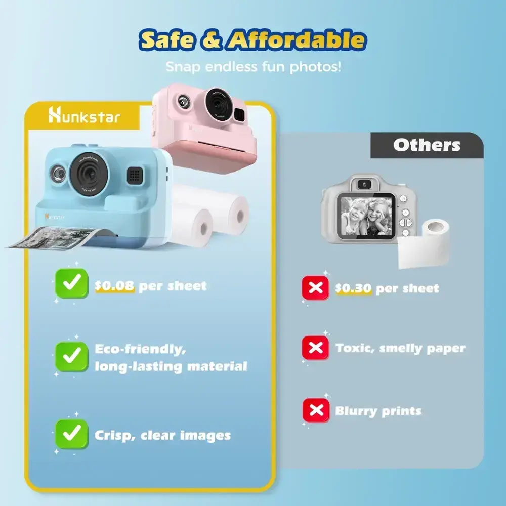 The HC200 lets kids capture and print moments instantly using thermal printing technology—no ink cartridges needed. It prints black-and-white photos and includes three rolls of thermal paper for endless fun.