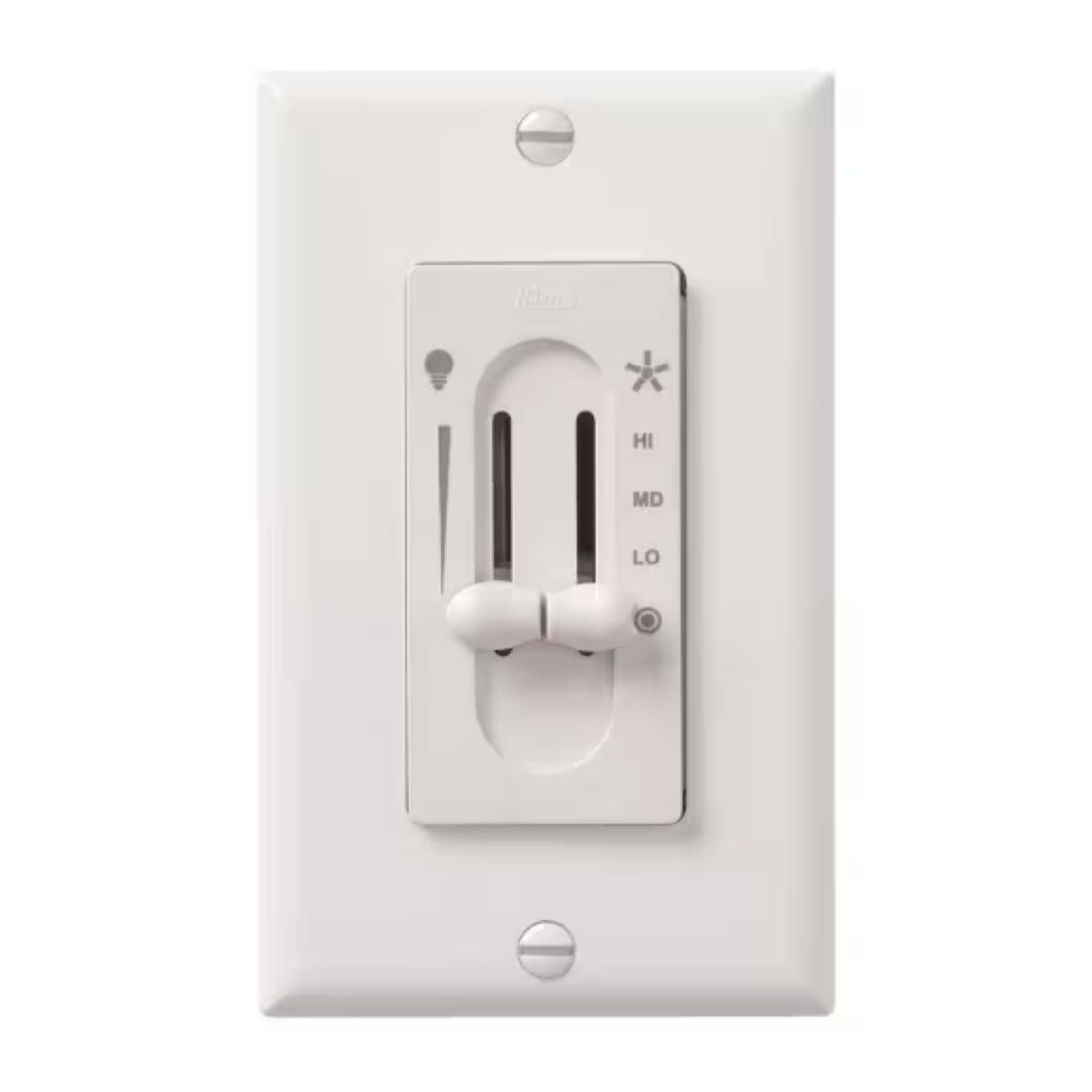 The Hunter All-Fan 3-Speed Fan/Light Dual-Slide Ceiling Fan Control can be used with ceiling fans that operate with up to 300 watts of light and 1.6 amps for the fan.