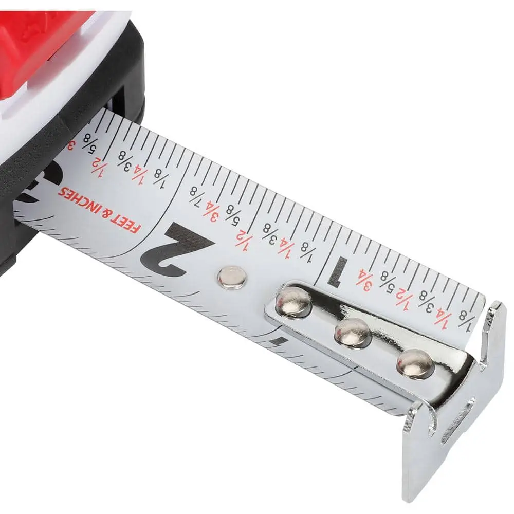 The Husky 16FT Tape Measure features a 1-1/8 in. W blade for enhanced visibility and offers an impressive reach of up to 12 feet. Its soft rubber cover ensures comfortable gripping. This tape measure is equipped with Nylon blade protection for durability and an impact-resistant reinforced frame that extends its lifespan. Printed fractional graduations on the tape blade facilitate quick measurements, while the high-contrast printing blade color ensures excellent readability in any situation