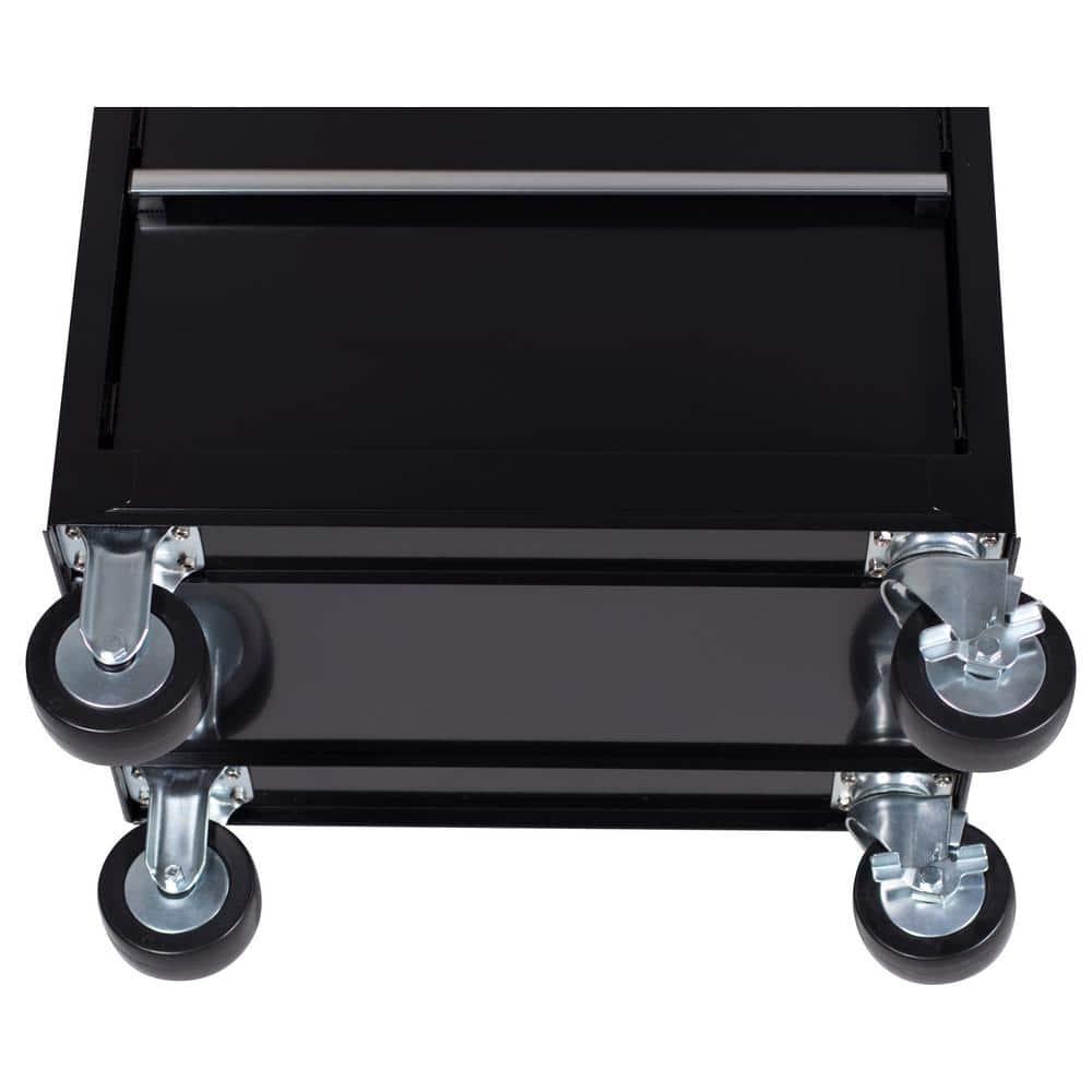Husky 27-Inch 5-Drawer Rolling Tool Cabinet: Your Ultimate Workspace Solution Keep your garage organized and your tools easily accessible with the Husky 27-Inch 5-Drawer Rolling Tool Cabinet. This durable and versatile tool cabinet is designed to meet the needs of both DIYers and professional craftsmen. Key Features: Ample Storage: With five drawers of varying sizes, including a large bottom drawer, you'll have plenty of space to store all your tools and equipment. Durable Construction: The all-welded steel construction and rust-resistant powder coat finish ensure long-lasting durability and protection. Smooth Operation: The soft-closing ball bearing slides allow for easy access to your tools and can handle heavy loads. Portability: The rolling casters and ergonomic handle make it easy to move the cabinet around your workspace. Security: The internal locking system with two keys provides added peace of mind.