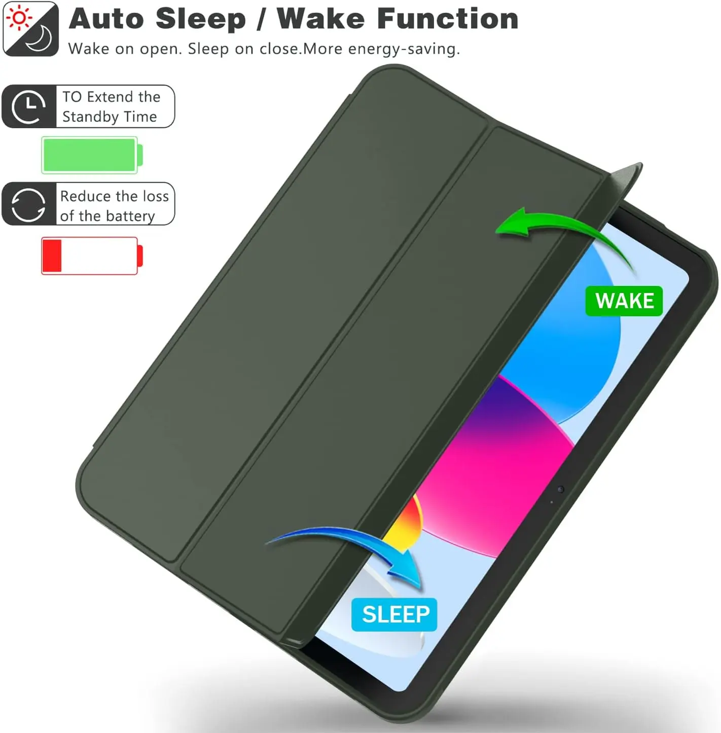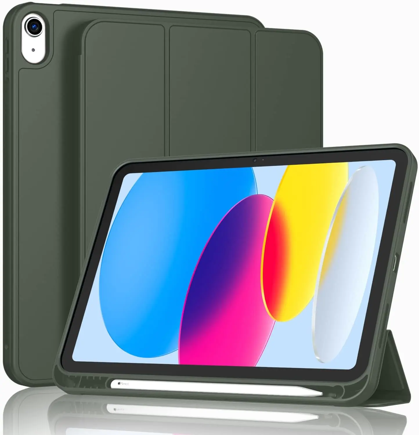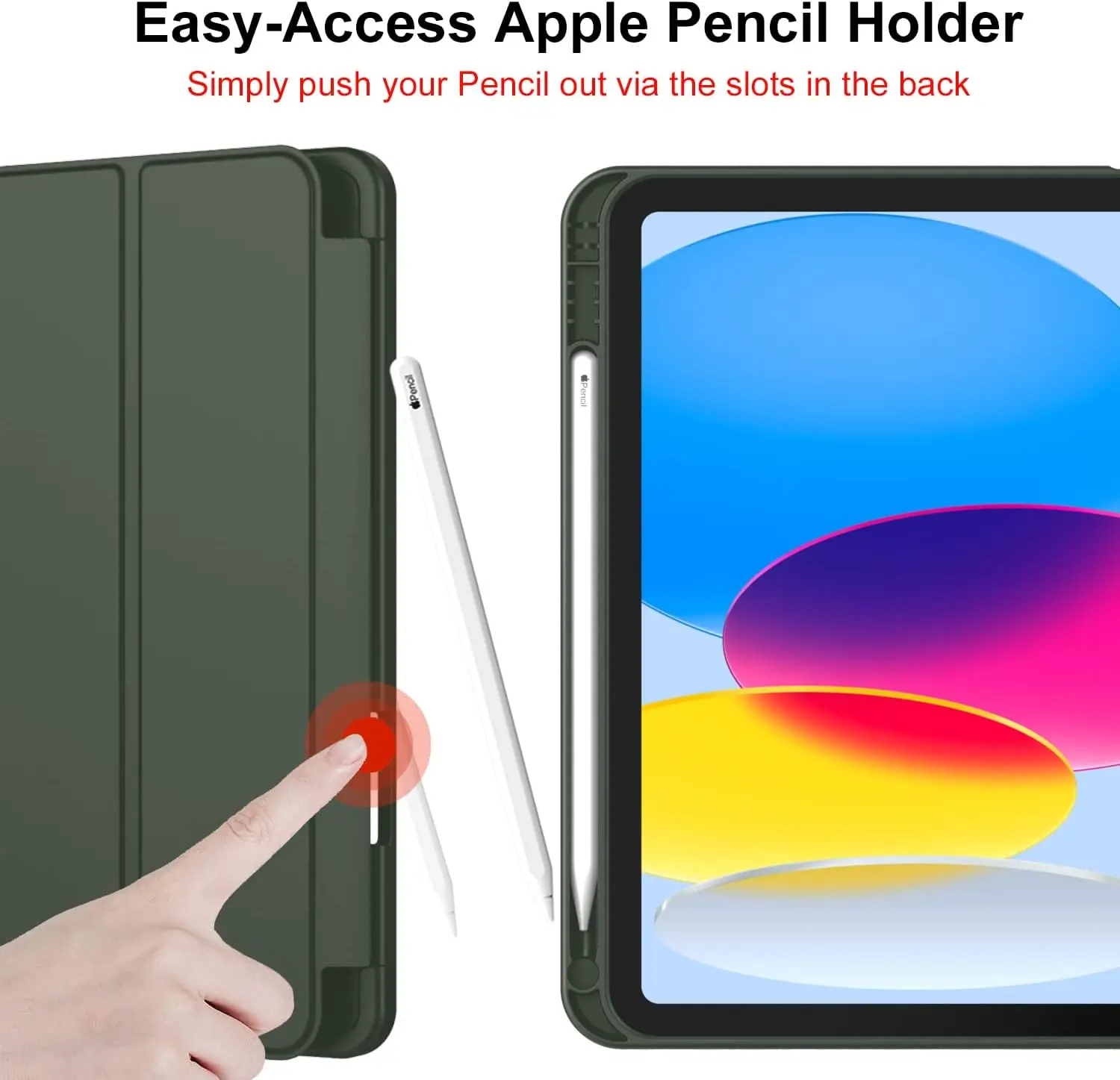 iMieet Case for New iPad 10.9 Inch (10th Gen, 2022) - Trifold Stand with Pencil Holder, Soft TPU Back, and Auto Wake/Sleep (Dark Green)