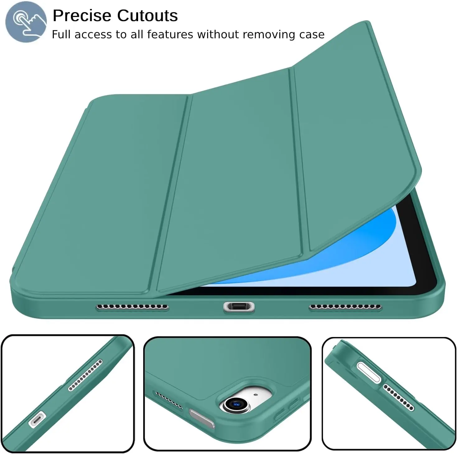 iMieet Case for New iPad 10.9 Inch (10th Gen, 2022) - Trifold Stand with Pencil Holder, Soft TPU Back, and Auto Wake/Sleep (Forest Green)