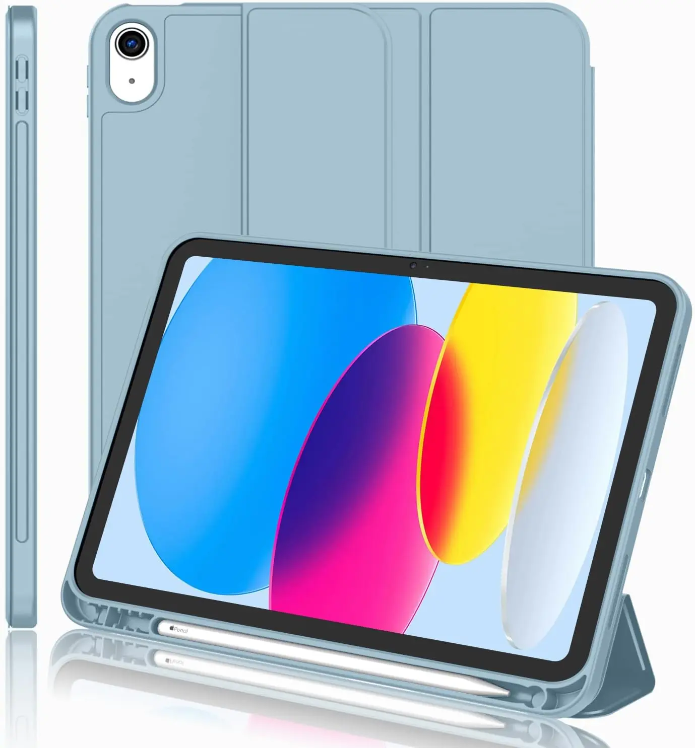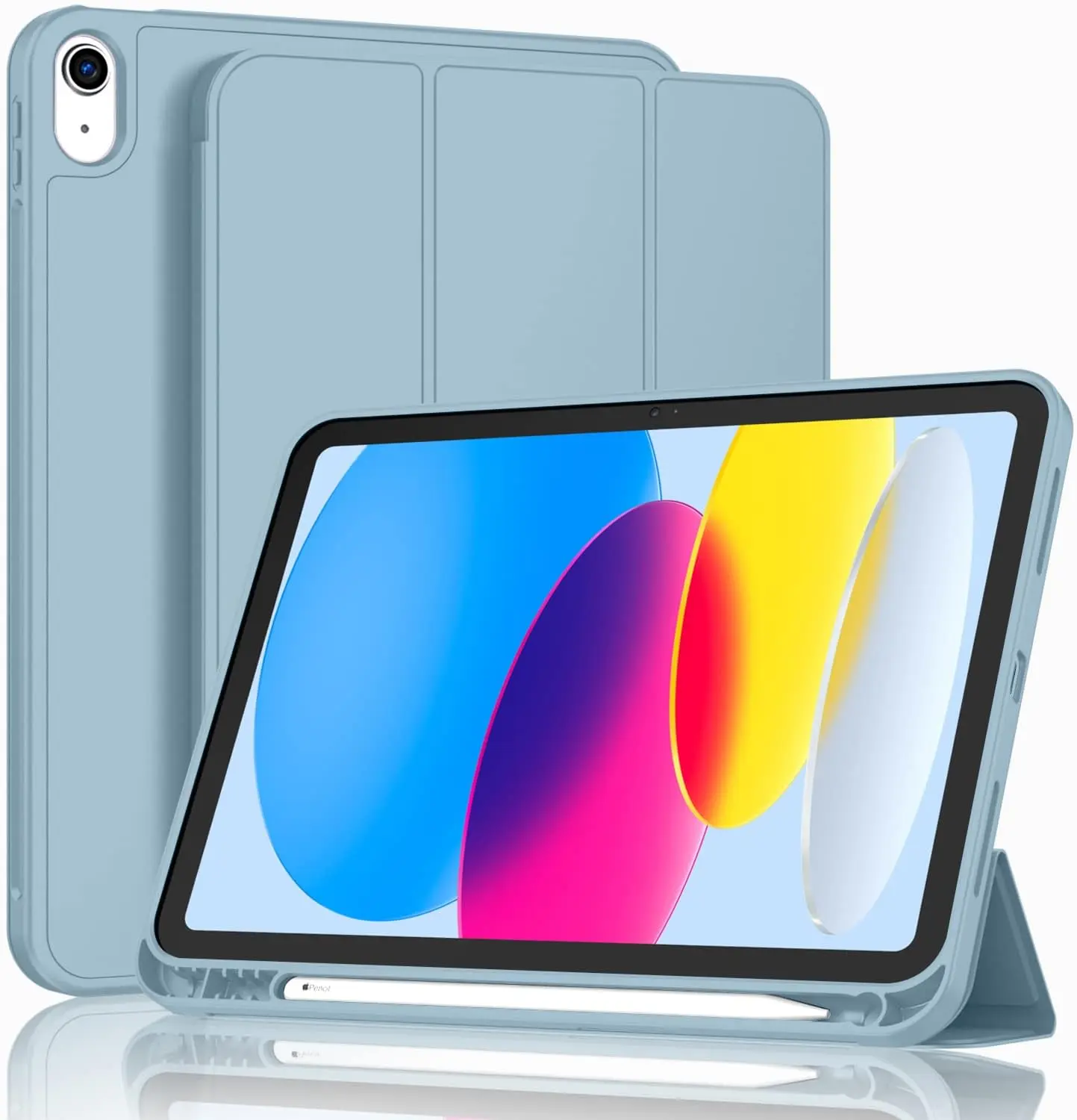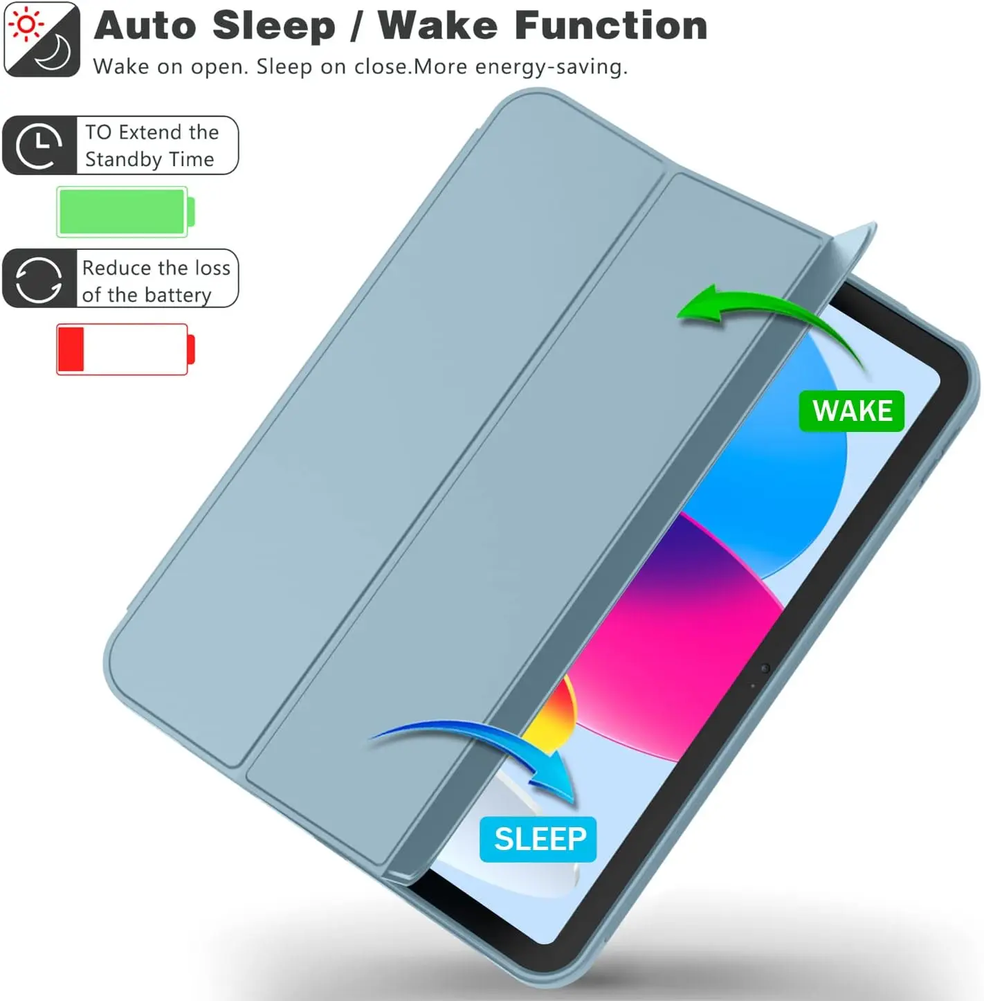 iMieet Case for New iPad 10.9 Inch (10th Gen, 2022) - Trifold Stand with Pencil Holder, Soft TPU Back, and Auto Wake/Sleep (Light Blue)