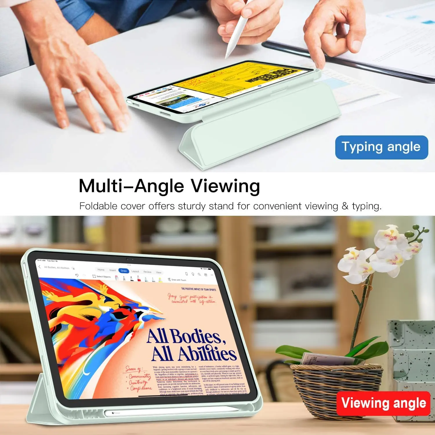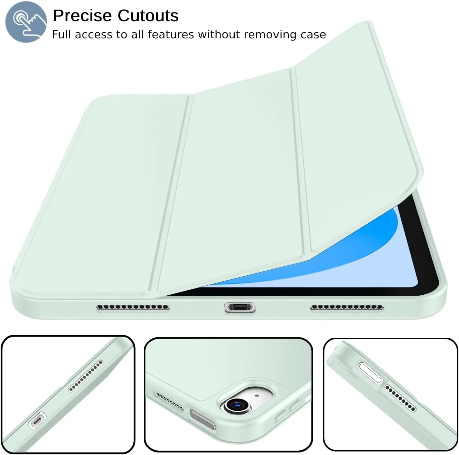 The iMieet New iPad 10.9 Inch Case (10th Gen, 2022) features a slim and lightweight design made from durable TPU material, ensuring protection from scratches and bumps. It is compatible exclusively with the iPad 10.9-inch 10th Generation (2022) model and includes a built-in Apple Pencil holder, supporting magnetic attachment and wireless charging. The case has a trifold stand for versatile viewing angles, an auto wake/sleep function, and precise cutouts for easy access to ports and features. Not compatible with other iPad models.