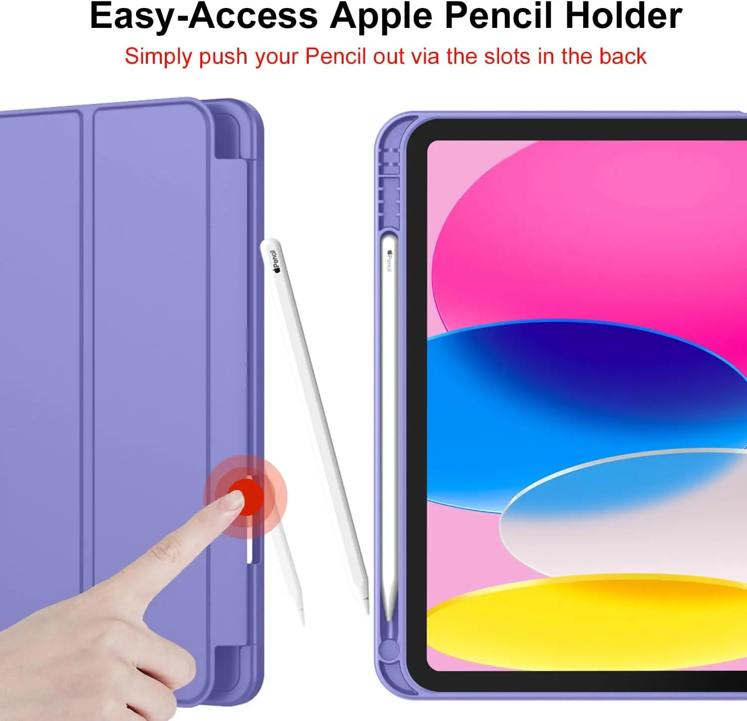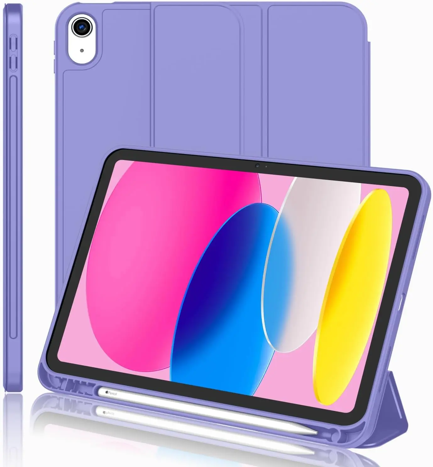 The iMieet New iPad 10.9 Inch Case (10th Gen, 2022) features a slim and lightweight design made from durable TPU material, ensuring protection from scratches and bumps. It is compatible exclusively with the iPad 10.9-inch 10th Generation (2022) model and includes a built-in Apple Pencil holder, supporting magnetic attachment and wireless charging. The case has a trifold stand for versatile viewing angles, an auto wake/sleep function, and precise cutouts for easy access to ports and features. Not compatible with other iPad models.