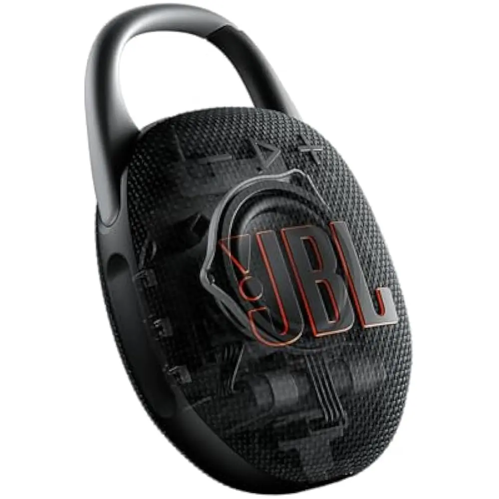 The JBL Clip 5 is an ultra-portable Bluetooth speaker designed to deliver punchy bass and clear sound in a compact, waterproof design. With a built-in carabiner, this speaker is easy to clip on and take with you, whether you're hiking, camping, or simply enjoying music on the go. It offers up to 12 hours of playtime, making it perfect for all-day adventures. The speaker is also IP67 rated, meaning it is both waterproof and dustproof, allowing for worry-free outdoor use. Made with recycled materials, the Clip 5 is eco-friendly and delivers great sound in a compact form.