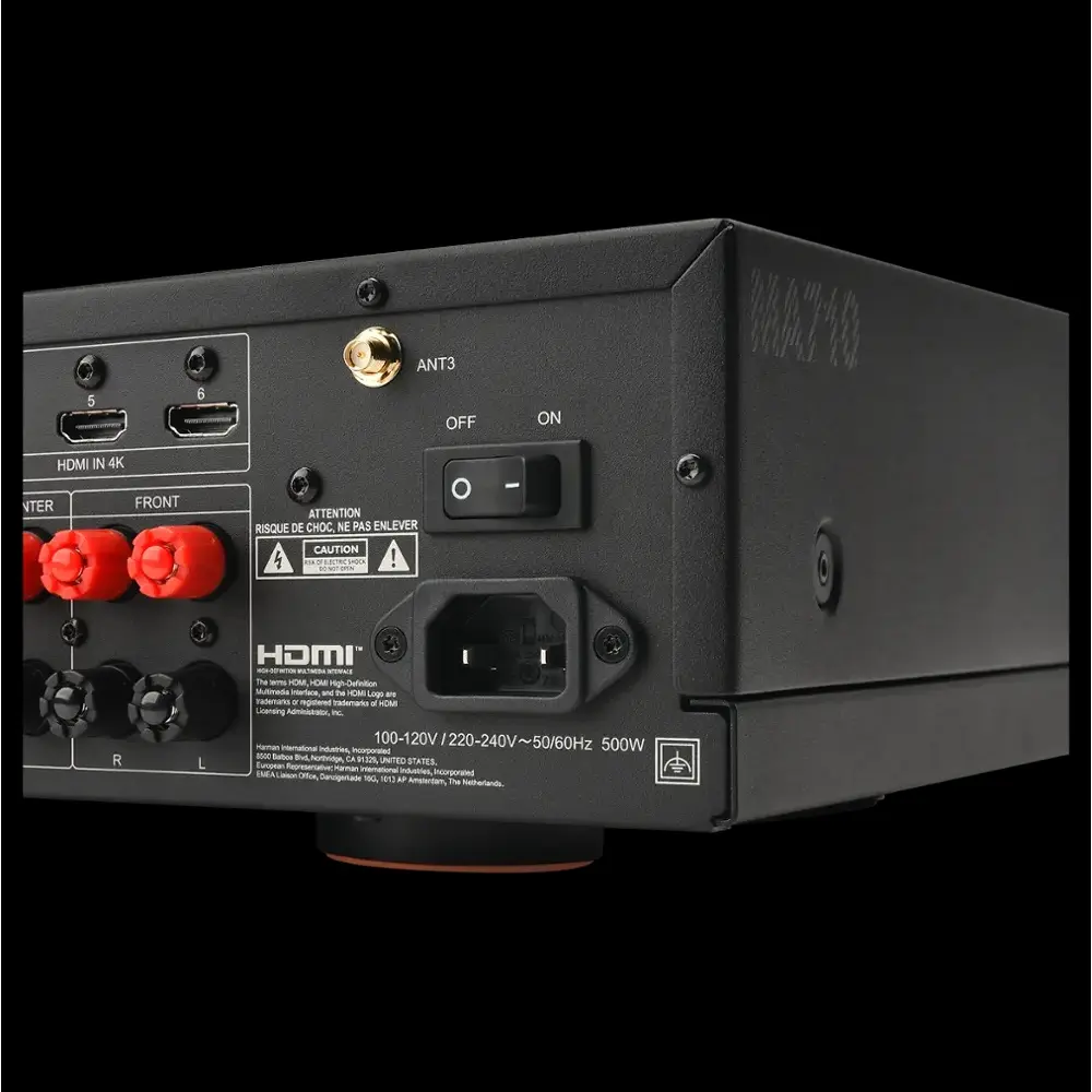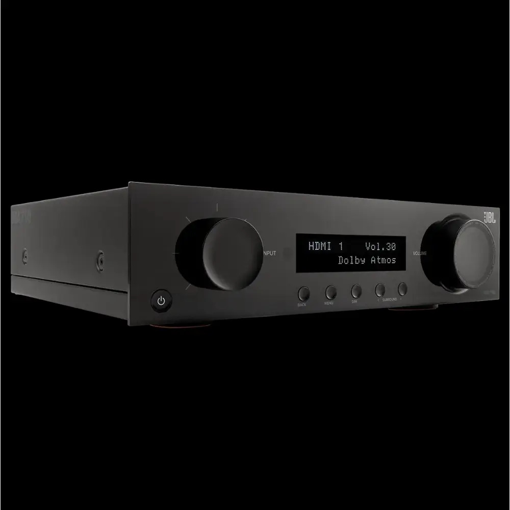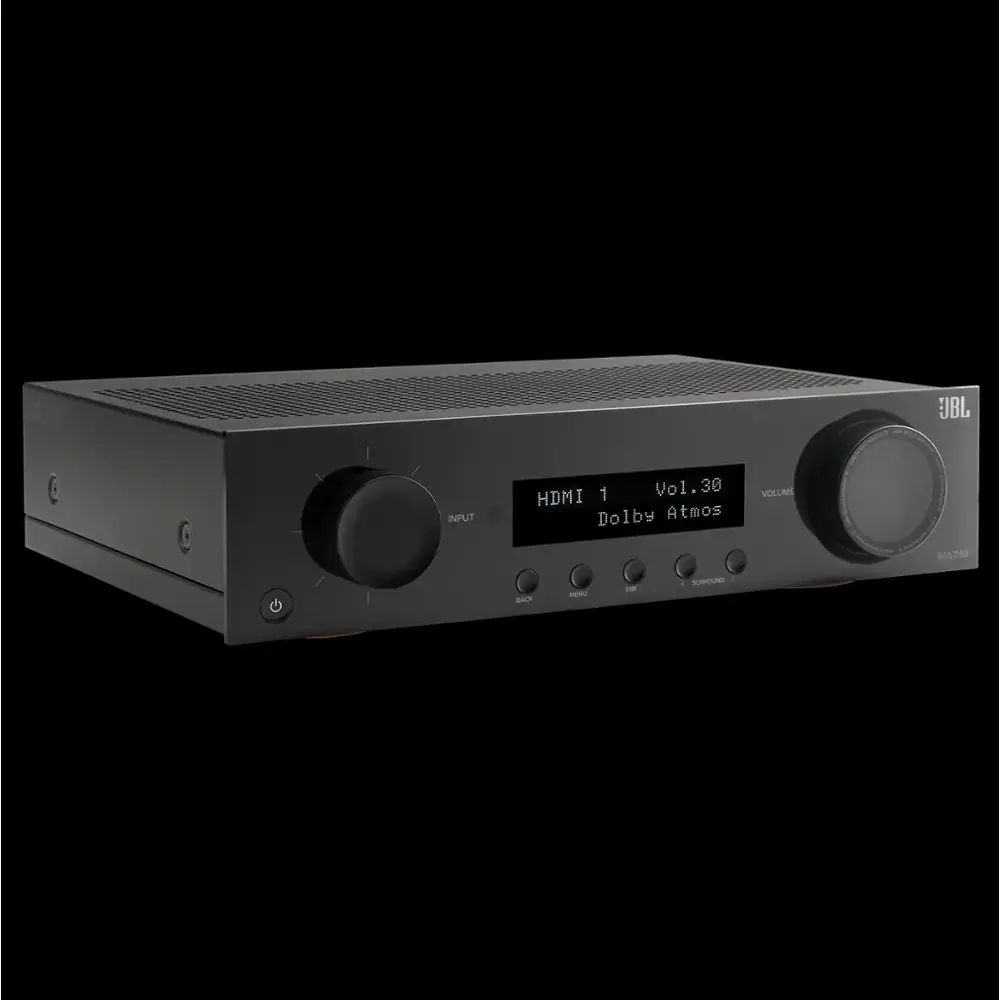 The JBL MA710 7.2-Channel AV Receiver delivers impressive audio performance with 90W per channel, creating a powerful, immersive sound experience. Equipped with Bluetooth and Wi-Fi capability, it allows seamless streaming from various devices. Enjoy Dolby Atmos support for rich, 3D surround sound paired with 8K Ultra HD compatibility for crystal-clear visuals. With HDR support, experience enhanced brightness, contrast, and color for vivid viewing. Its sleek black design adds a modern touch to any home theater setup