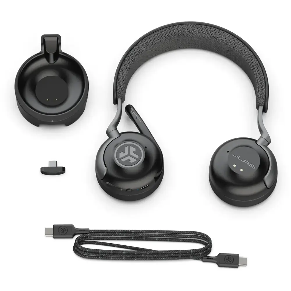 The JLab Epic Work ANC Wireless On-Ear Headset delivers an exceptional audio experience with Active Noise Cancellation (ANC) that blocks out unwanted noise, ensuring crystal-clear sound. Its wireless connectivity provides hassle-free use via Bluetooth, while the built-in microphone ensures clear communication during calls. Designed for comfort, it features cushioned earcups and an adjustable headband for all-day wear. Enjoy up to 45 hours of playtime on a single charge, with a quick mute button for easy control. The sleek Graphite finish adds a modern, professional touch to your audio gear.