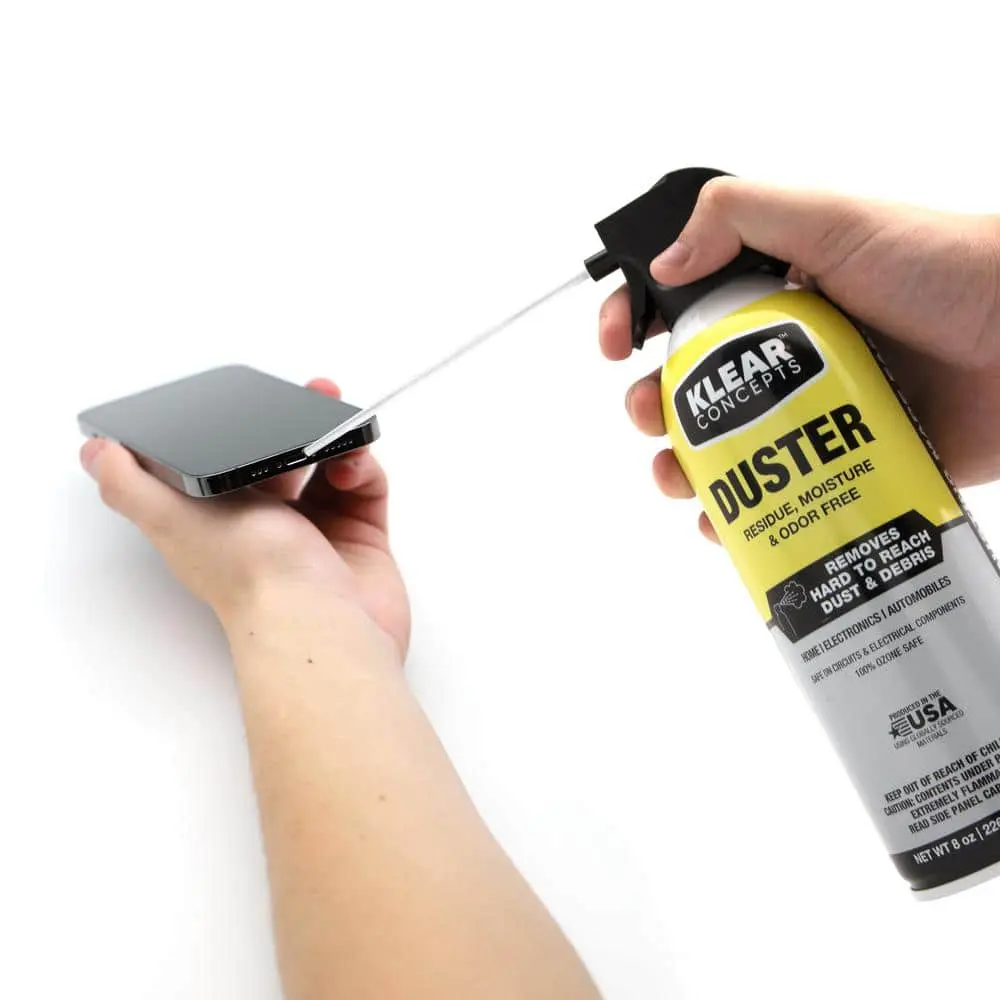 The Air Duster safely and efficiently removes dust, lint, and debris from electronic and mechanical devices. It’s ideal for cleaning keyboards, cell phones, and other hard-to-reach areas, thanks to its extended nozzle. The formula cleans without leaving any residue.