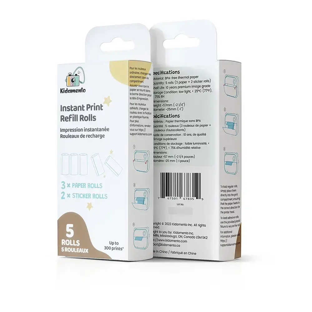 Kidamento Model P Instant Print Refill Set (3 Paper Rolls, 2 Sticker Rolls)